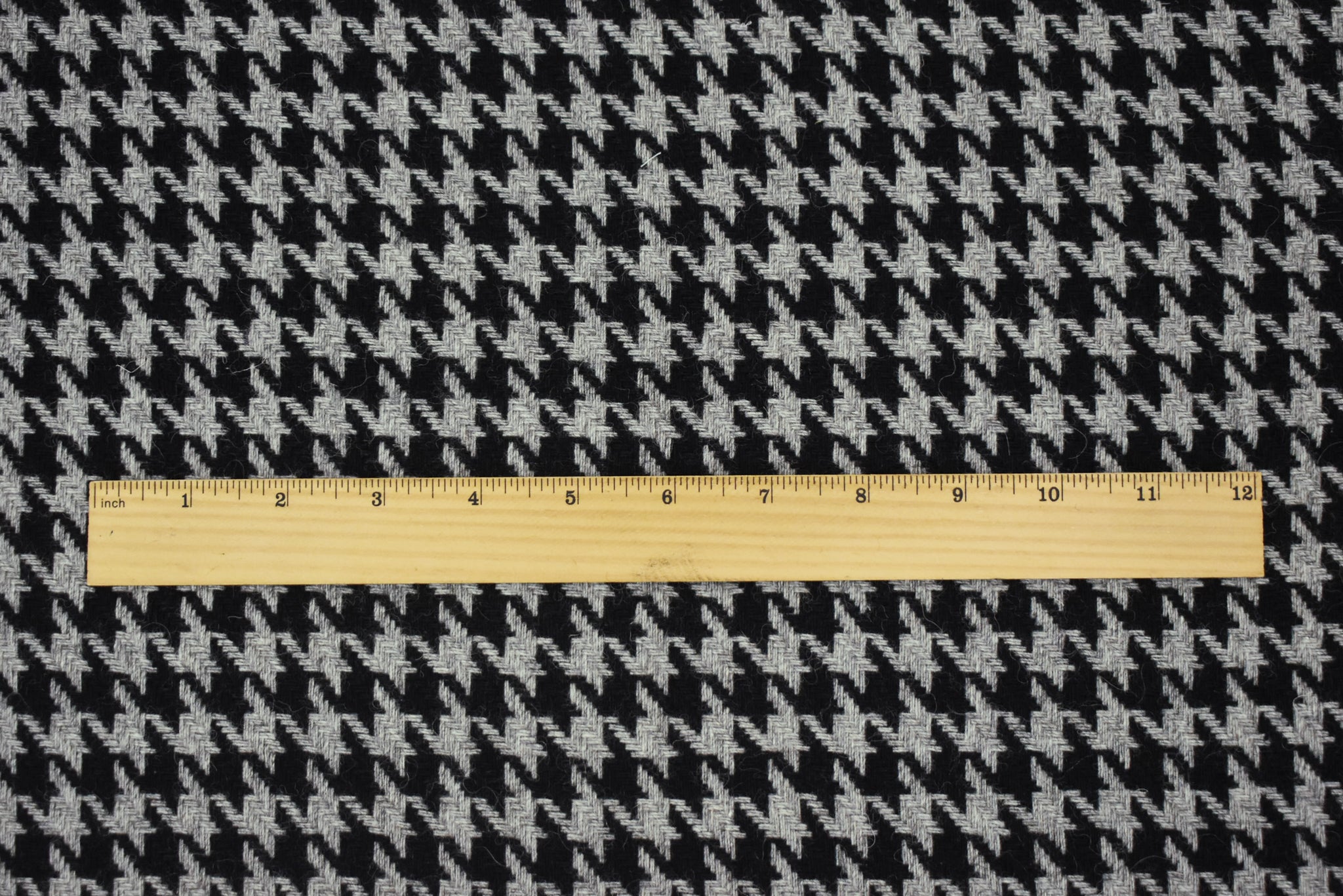 Black-Gray Wool-Polyester Houndstooth Woven Jacketing Fabric