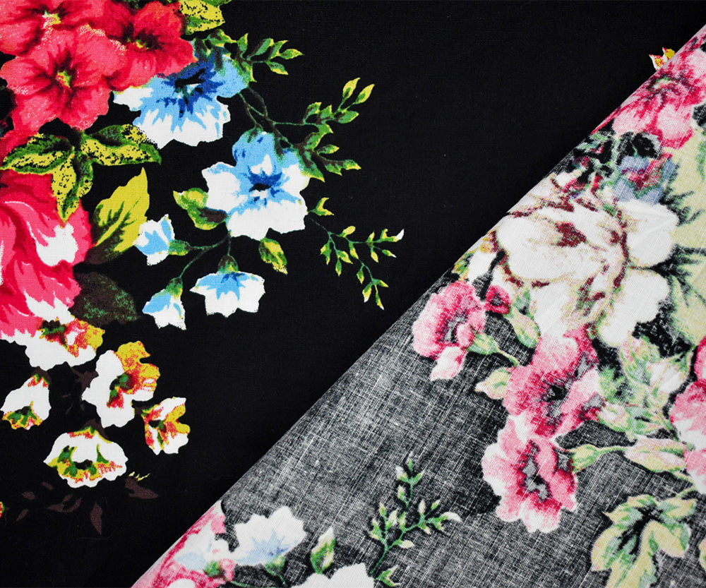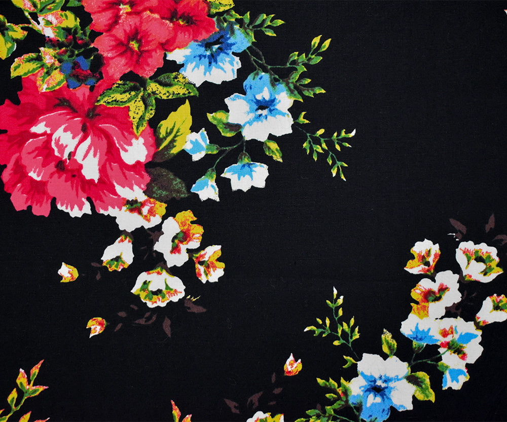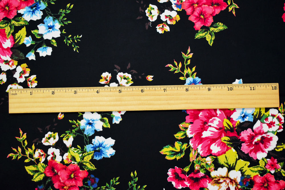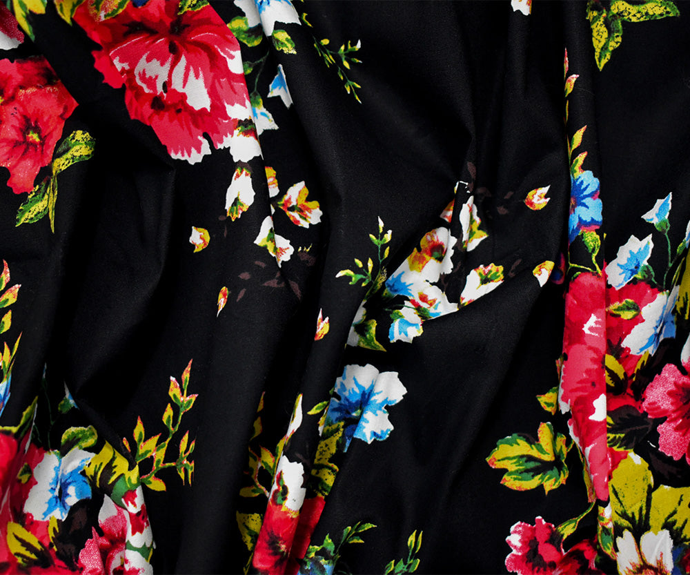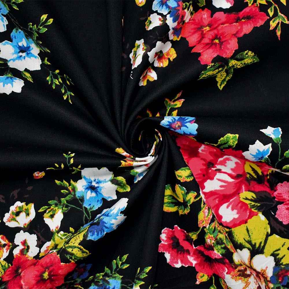 Black-Red-Blue Cotton Stretch Spandex Floral Print Poplin Woven Fabric