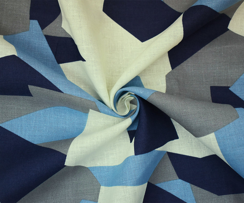 Blue-Gray-Multi Abstract Geomtric Printed Linen Woven Fabric