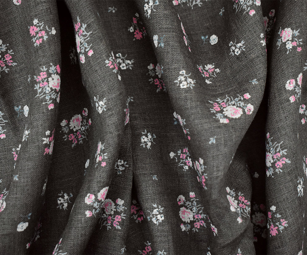 -100% linen plain woven fabric printed with a ditsy floral pattern. Line if needed.