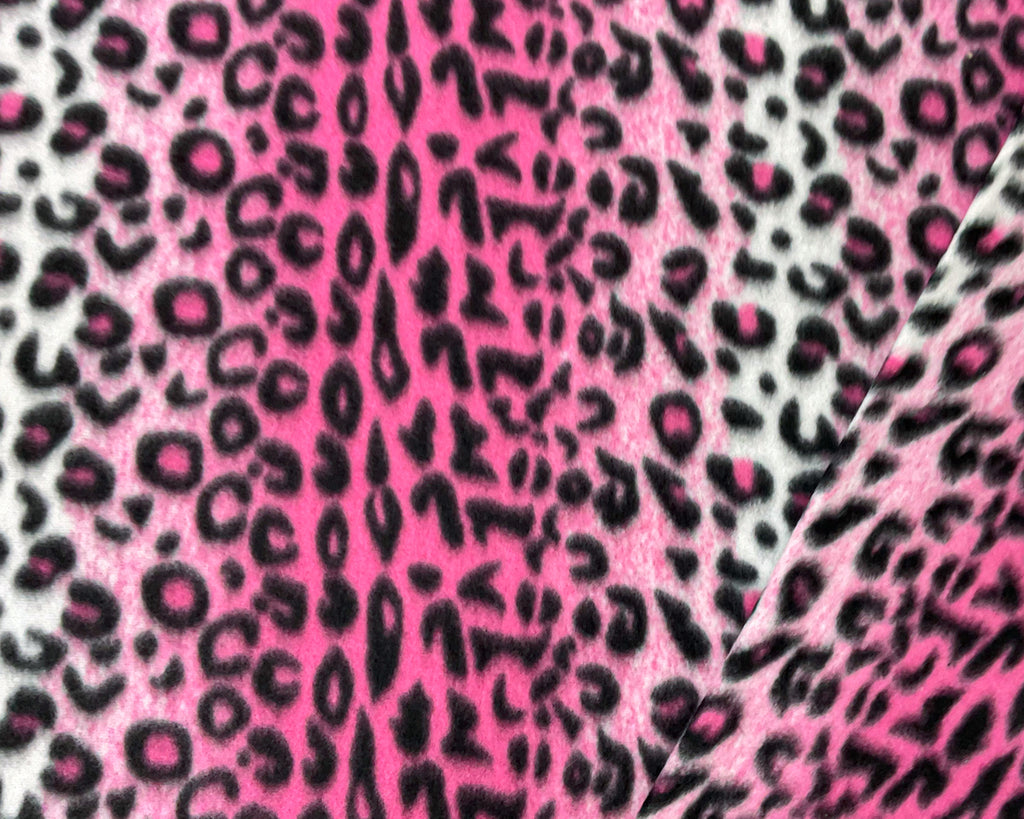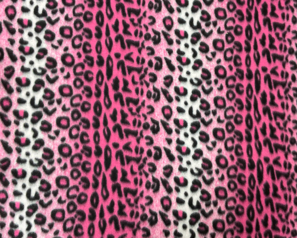 -325G/Y, Pink-Black-White Polyester Leopard Printed Polar Fleece Knit Fabric