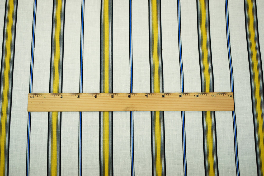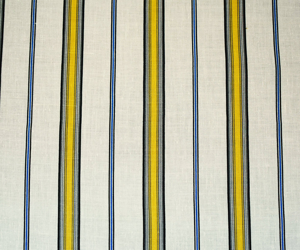 White-Yellow-Blue Stripe Printed Linen Woven Fabric