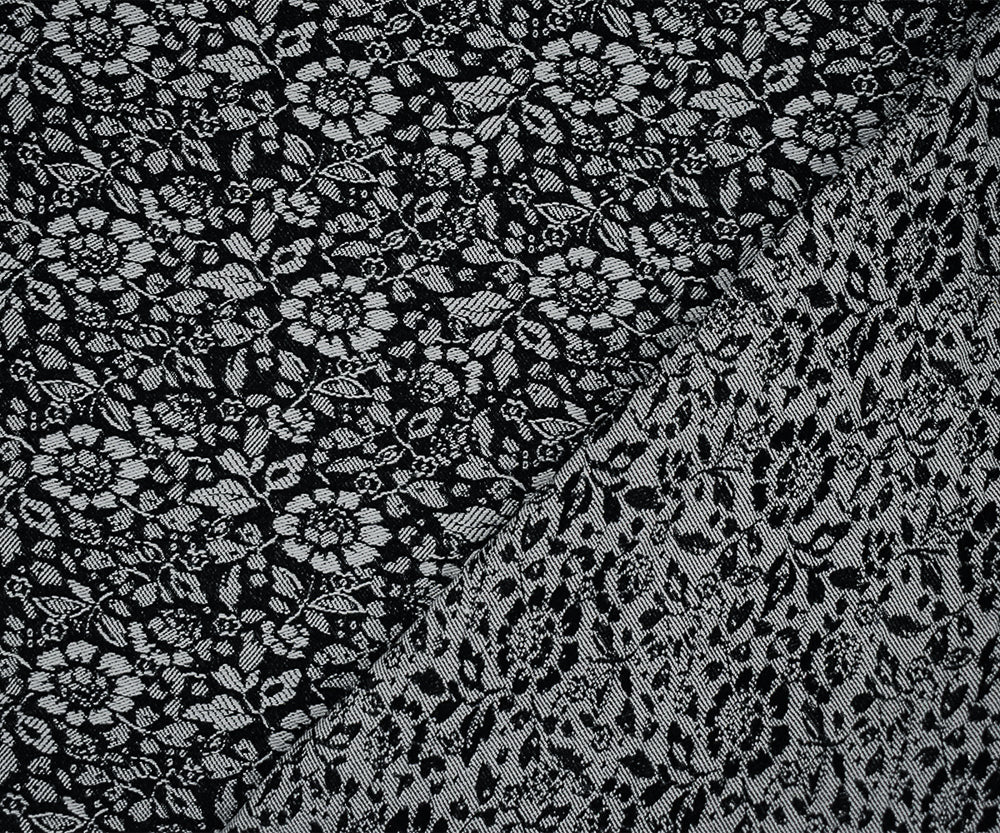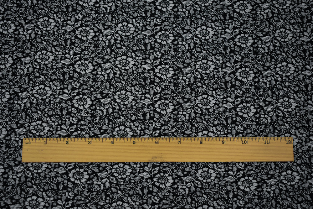 Black-White Rayon Blend Stretch Spandex Floral Bengaline Jacquard Fabric