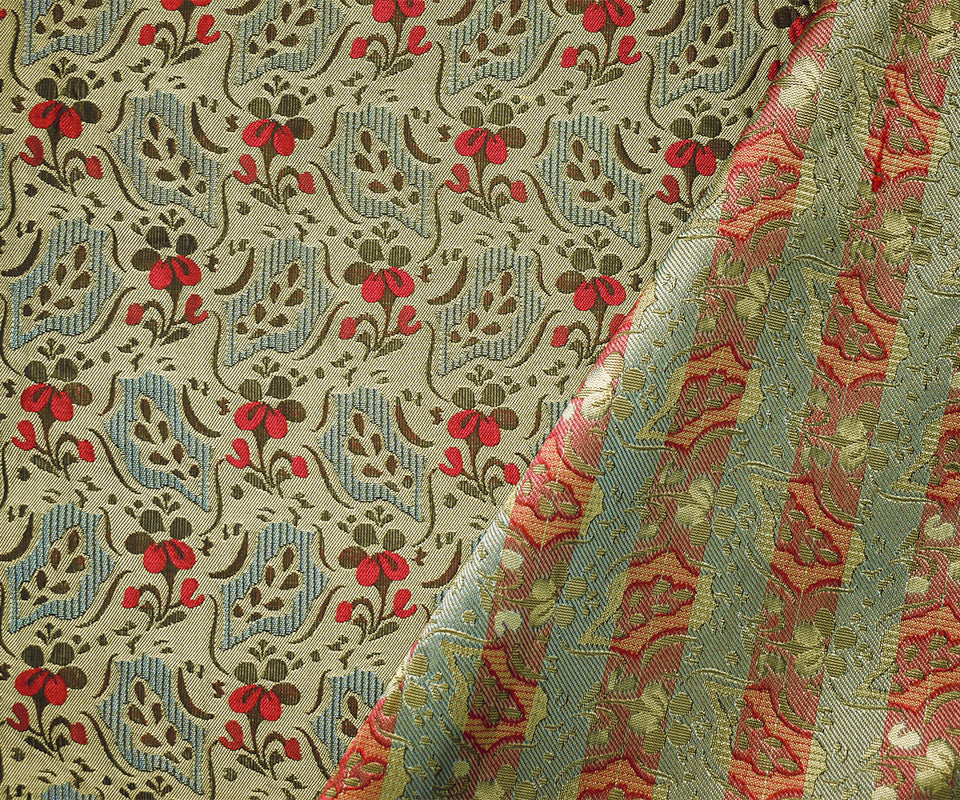 Gray-Blue-Multi Poly Abstract Floral Jacquard Woven Fabric