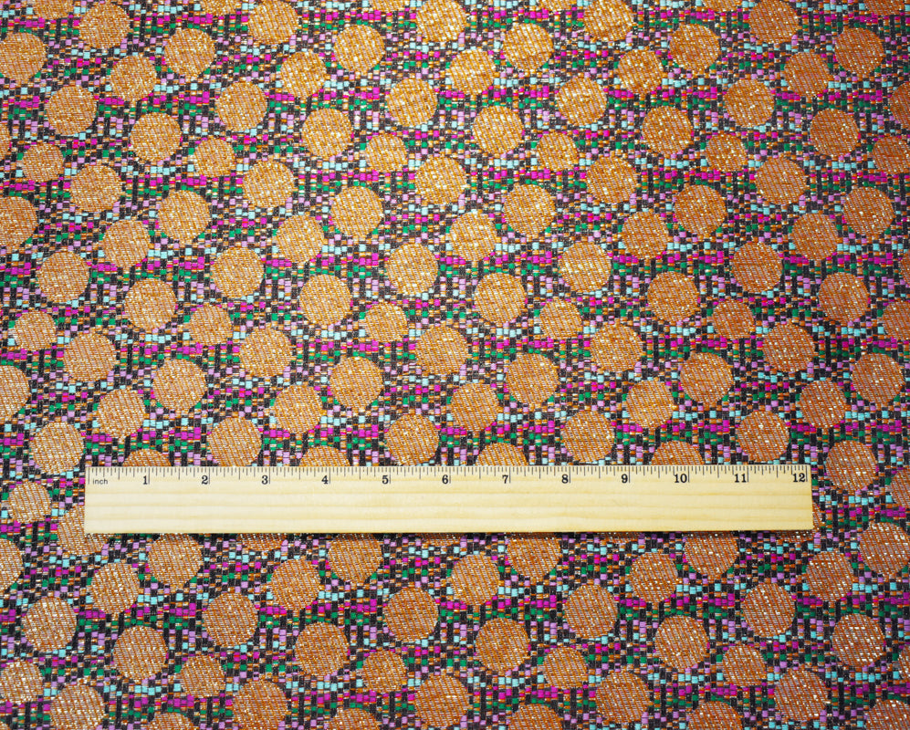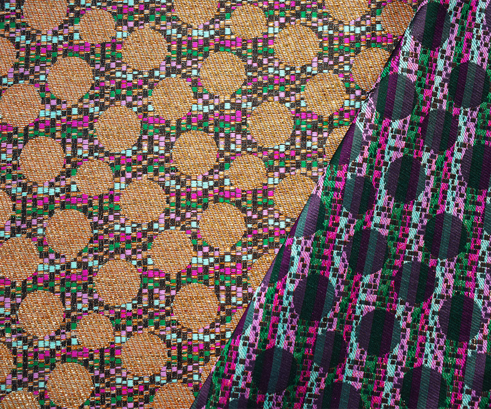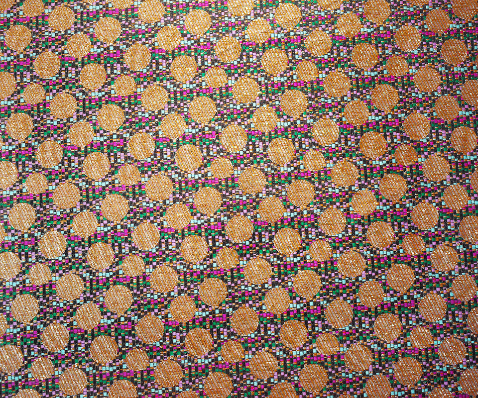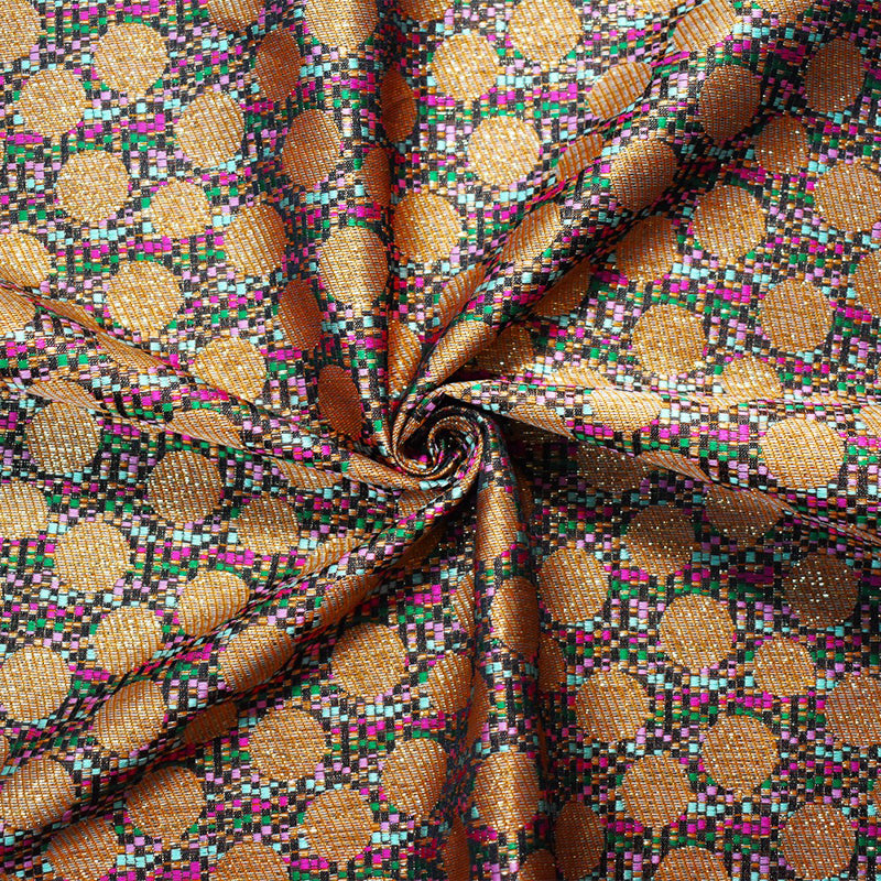 Pink-Gold-Multi Polyester Circle Stripe Jacquard Brocade Woven Fabric