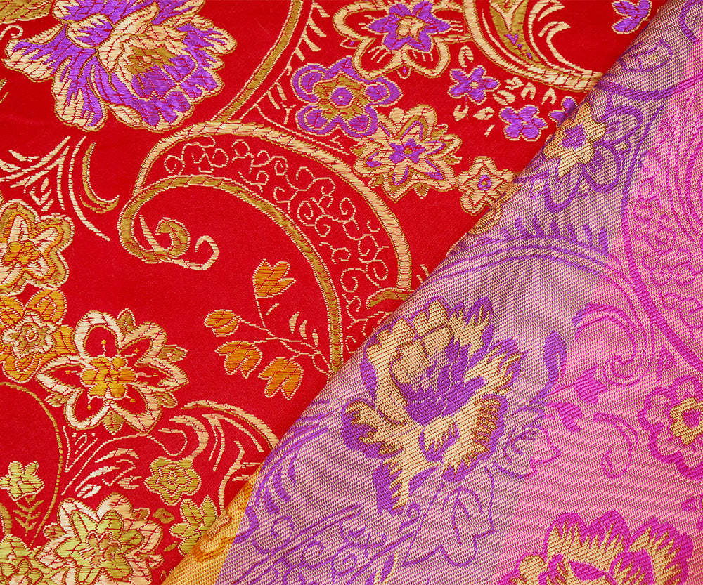 Red-Beige-Multi Polyester Floral Chinese Brocade Woven Fabric