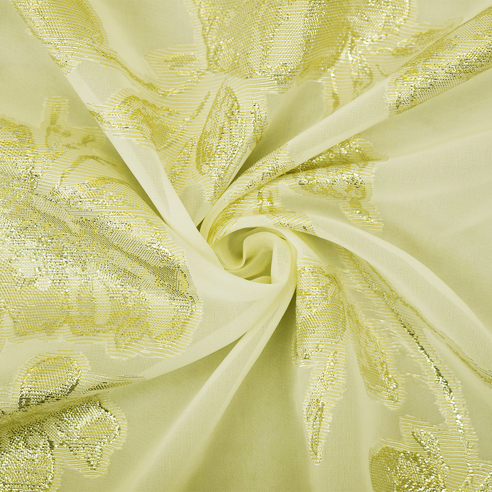 Yellow-Silver-Gold Nylon Blend Metallic Floral Organza Woven Fabric