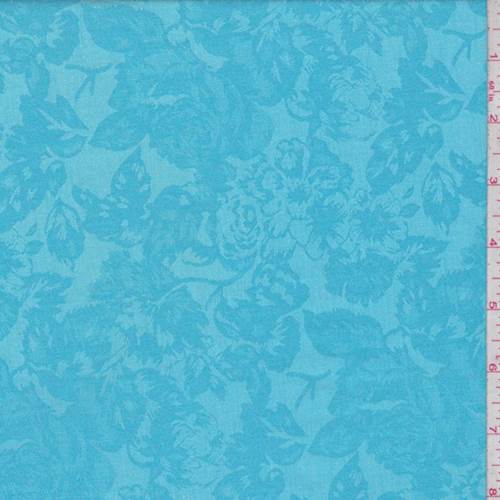 Turquoise Floral Satin Jacquard Fabric