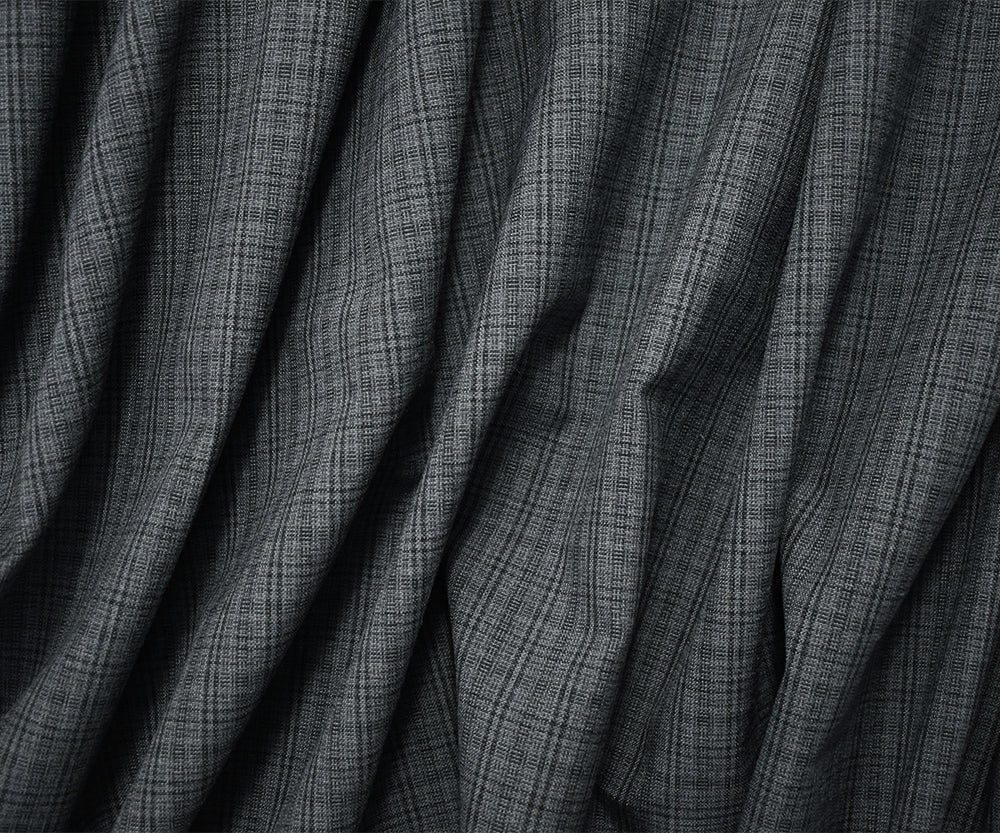 Gray-Black Poly-Wool Japanese Plaid Woven Suiting Fabric