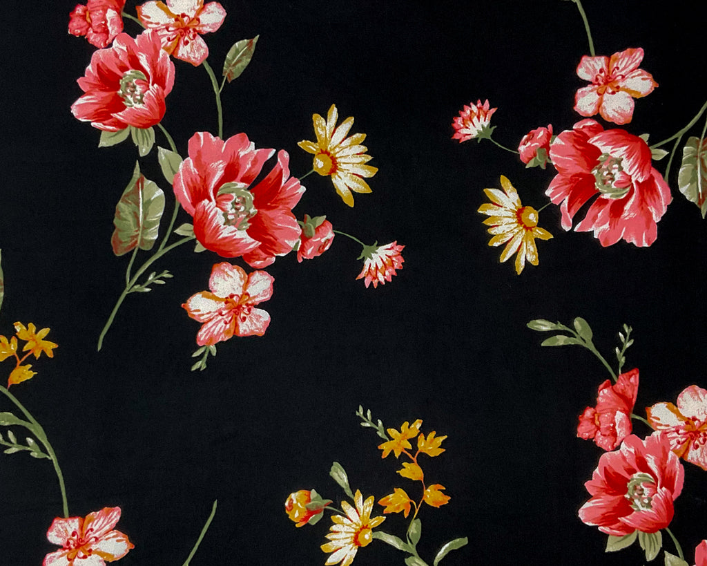 Black-Multi Poly Spandex Stretch Floral Print DB Jersey Knit Fabric