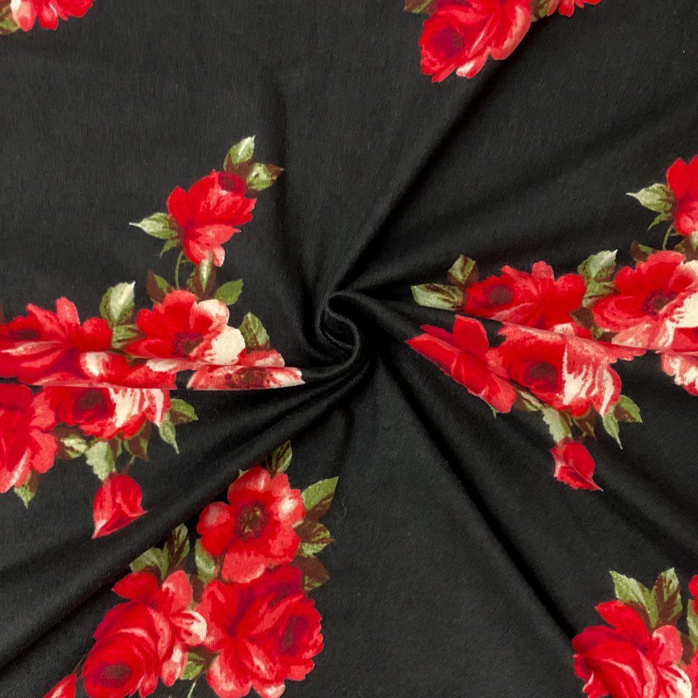 -Black-Multi Poly Spandex Stretch Floral Print Double Brush Jersey Knit Fabric