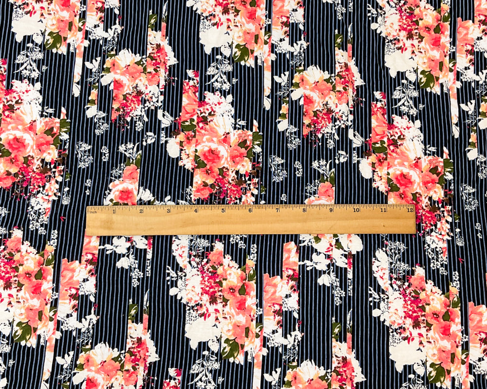 Black-Multi Rayon Spandex Floral Stripe Print Jersey Knit Fabric