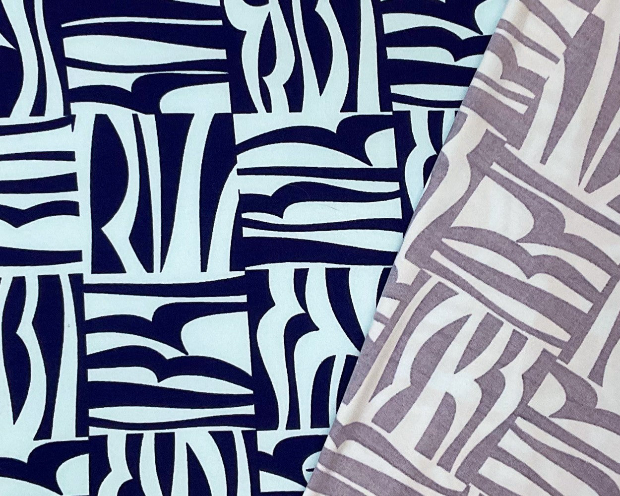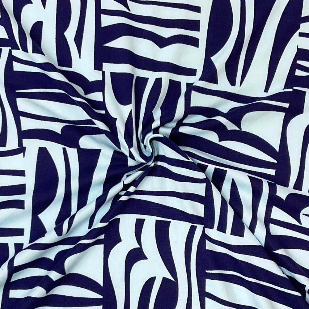 Blue-Navy Poly Stretch Spandex Abstract Print DB Jersey Knit Fabric