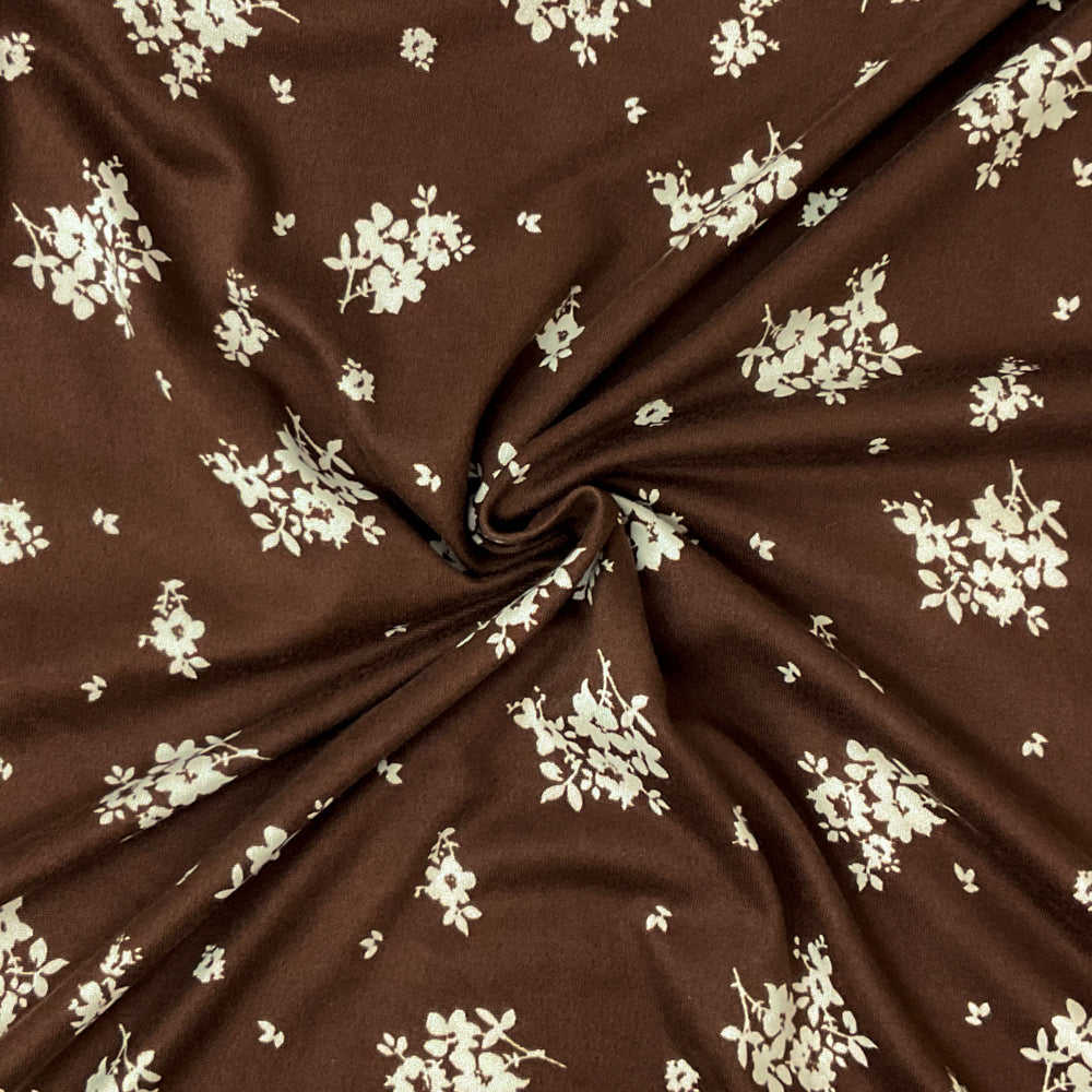 Brown-Multi Poly Stretch Spandex Floral Print DB Jersey Knit Fabric