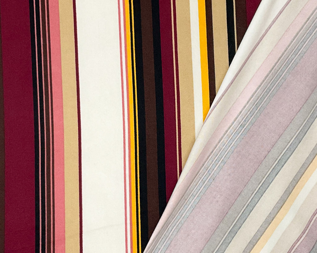 Deep Maroon-Multi Poly Stretch Spandex Vertical Stripe Print DB Jersey Knit Fabric