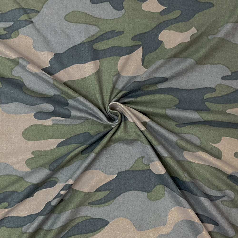 -Gray-Multi Poly Spandex Stretch Camo Print Double Brush Jersey Knit Fabric