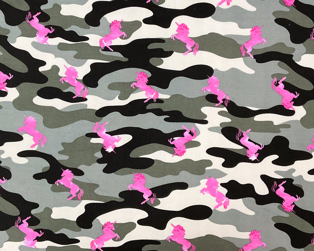Gray-Multi Poly Stretch Spandex Camo Unicorn Print DB Jersey Knit Fabric