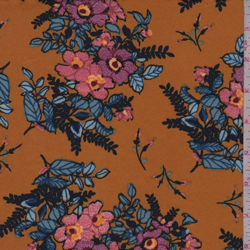 ITY Orange Gold Multi Floral Bouquet Jersey Knit Fabric