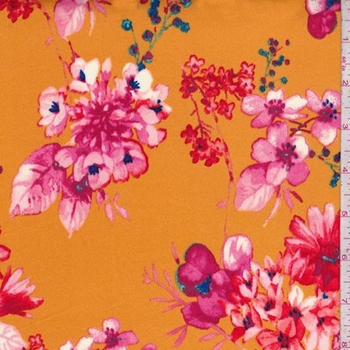 Mango/Fuchsia Floral Double Brushed Jersey Knit Fabric