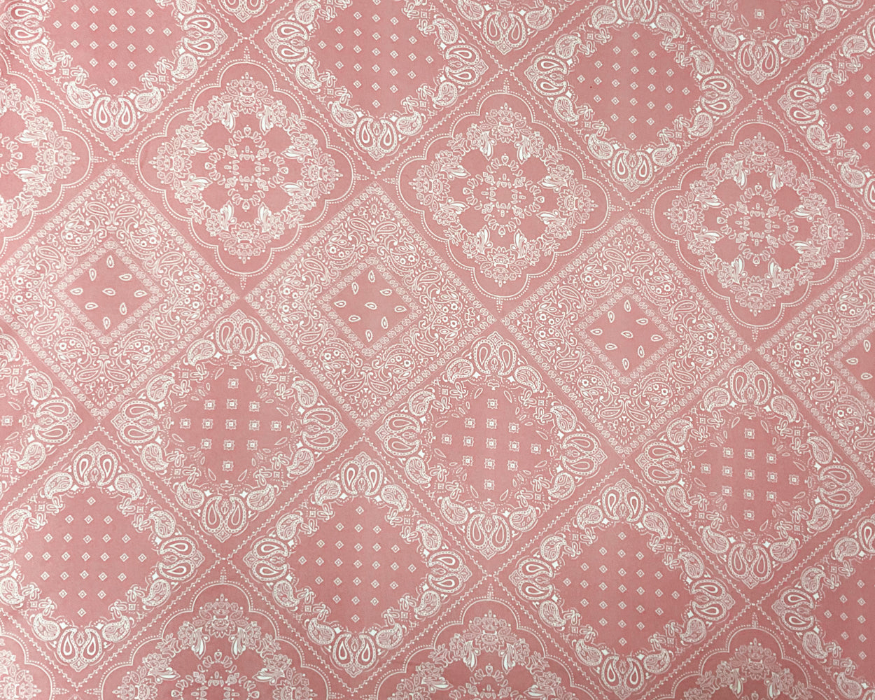 -Pink-White Poly Spandex Stretch Paisley Print Double Brush Jersey Knit Fabric