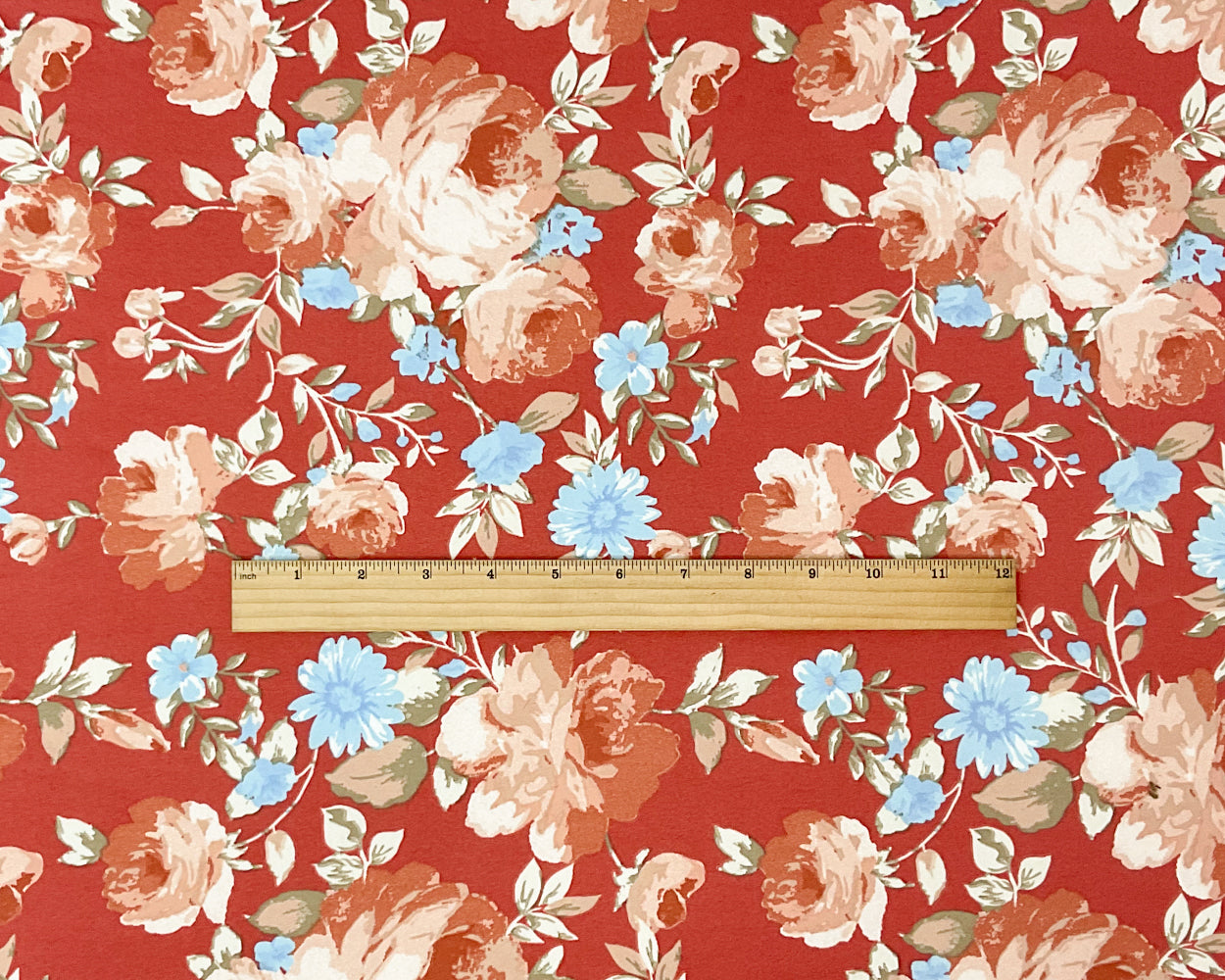 Red-Multi Poly Stretch Spandex Floral Print DB Jersey Knit Fabric