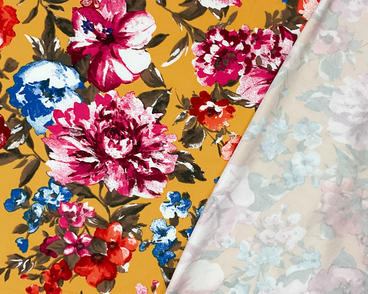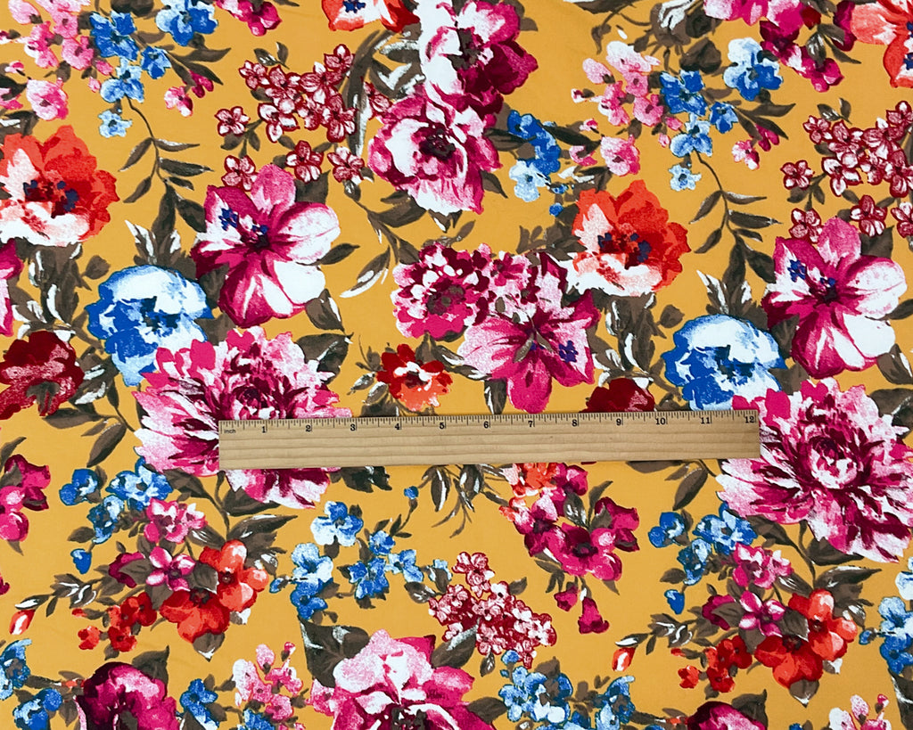 Yellow-Multi Poly Stretch Spandex Floral Print DB Jersey Knit Fabric