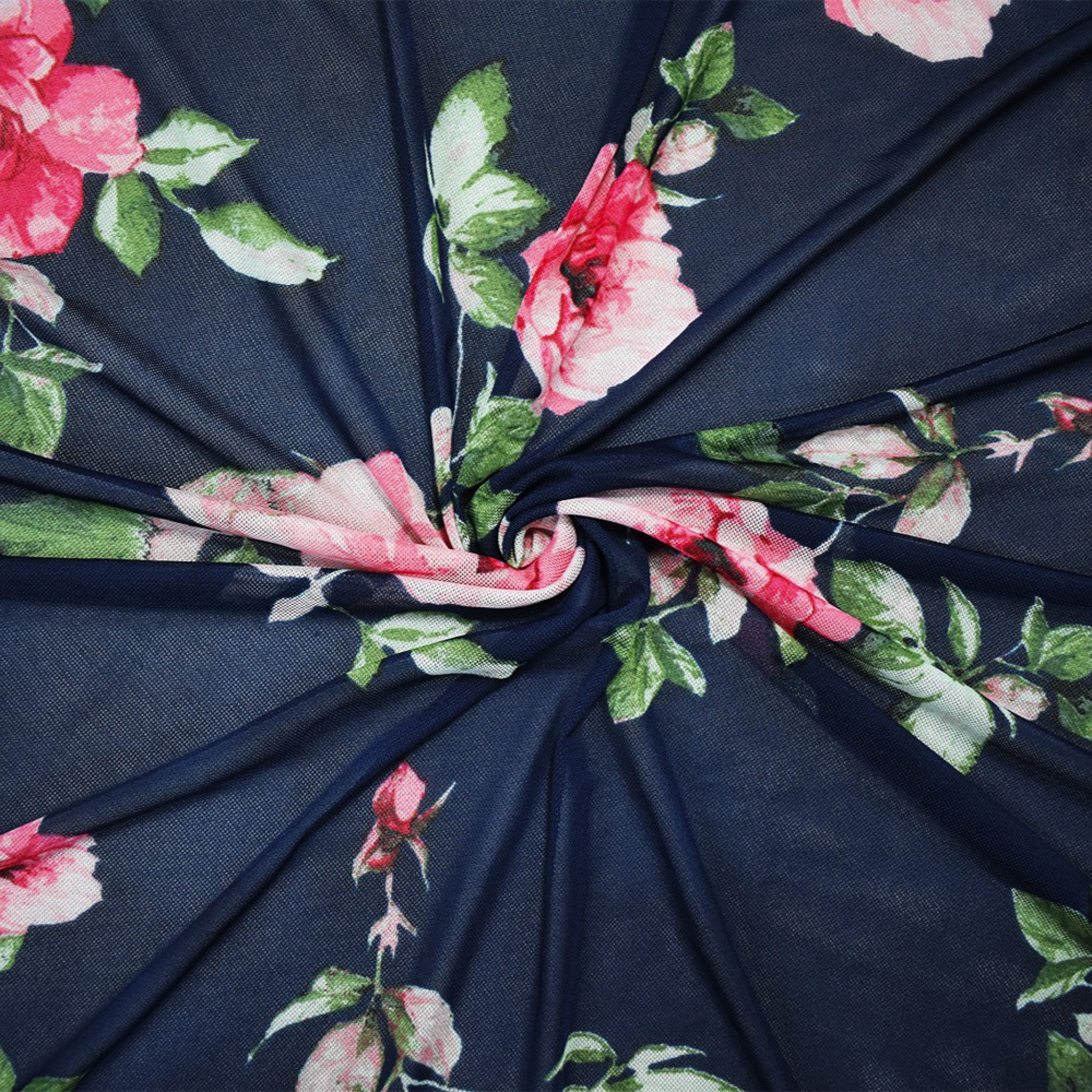 Deep Blue-Multi Poly Stretch Floral Printed Mesh Knit Fabric