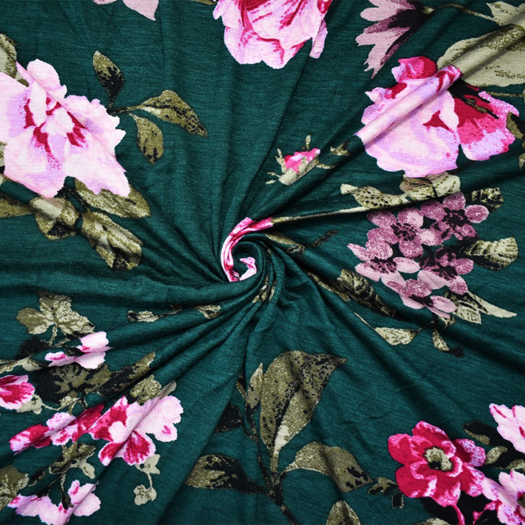 Green-Multi Rayon Stretch Spandex Floral Print Jersey Knit Fabric