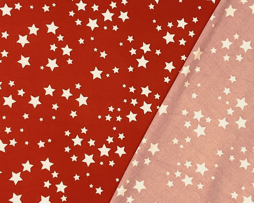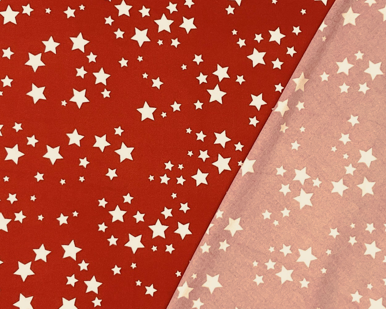 Red-White Poly Spandex Stretch Stars Print DB Jersey Knit Fabric