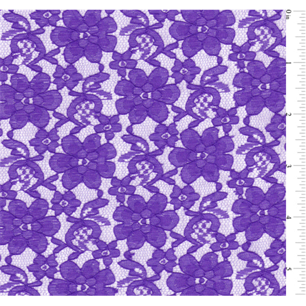 Solid Purple Allover Lace Fabric Suitable for Apparel, Home Decor, and Special Occasions 100% Polyester 60" Wide