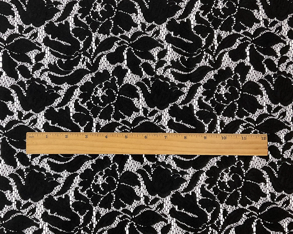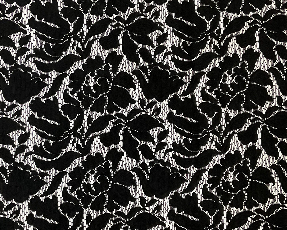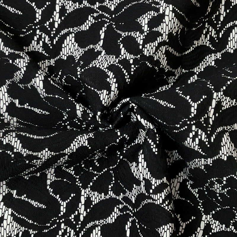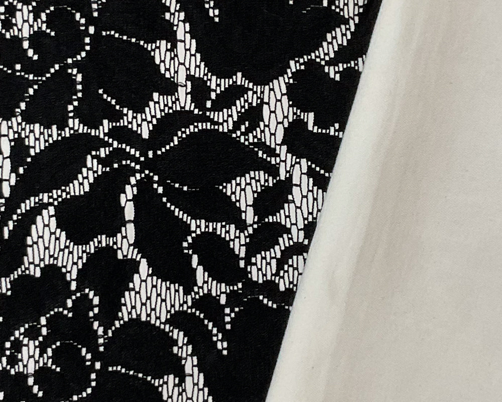 Black Floral Raschel Lace Bonded Twill Woven Fabric