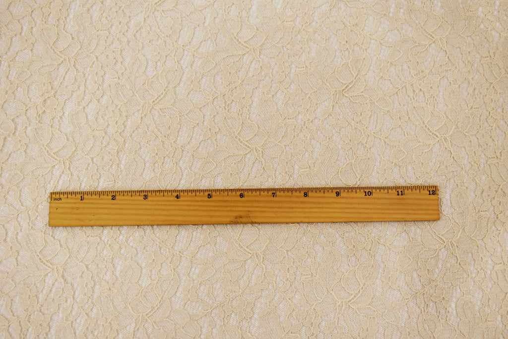 Pastel Beige Cotton Nylon Floral Lace Mesh Knit Fabric