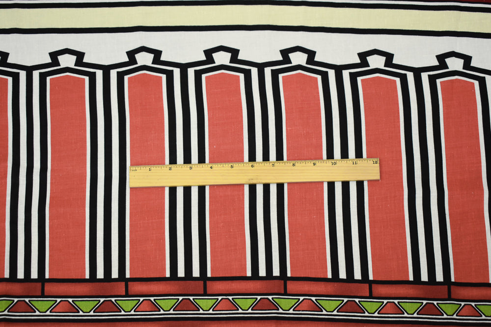 Coral Red-Black-Multi Aztec Pattern Printed Linen Woven Fabric