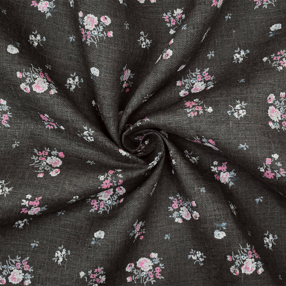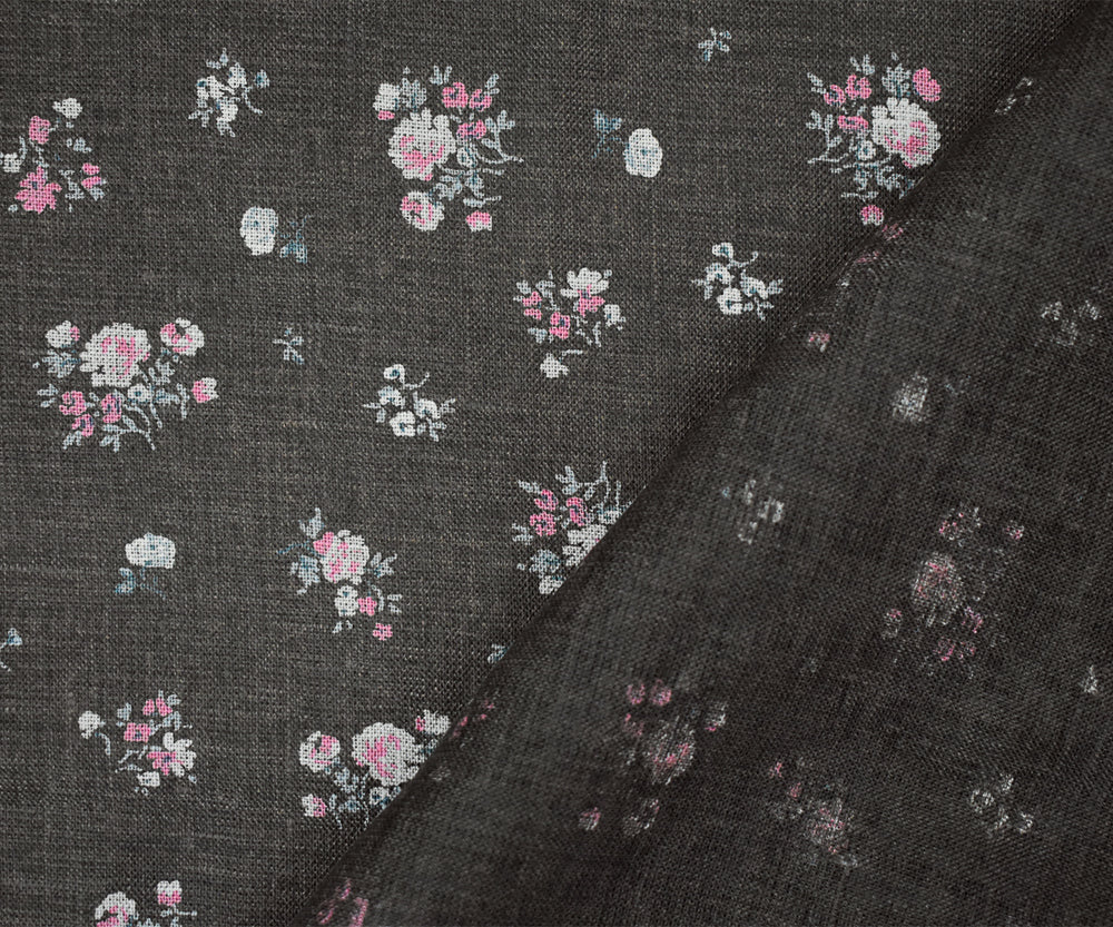 -100% linen plain woven fabric printed with a ditsy floral pattern. Line if needed.