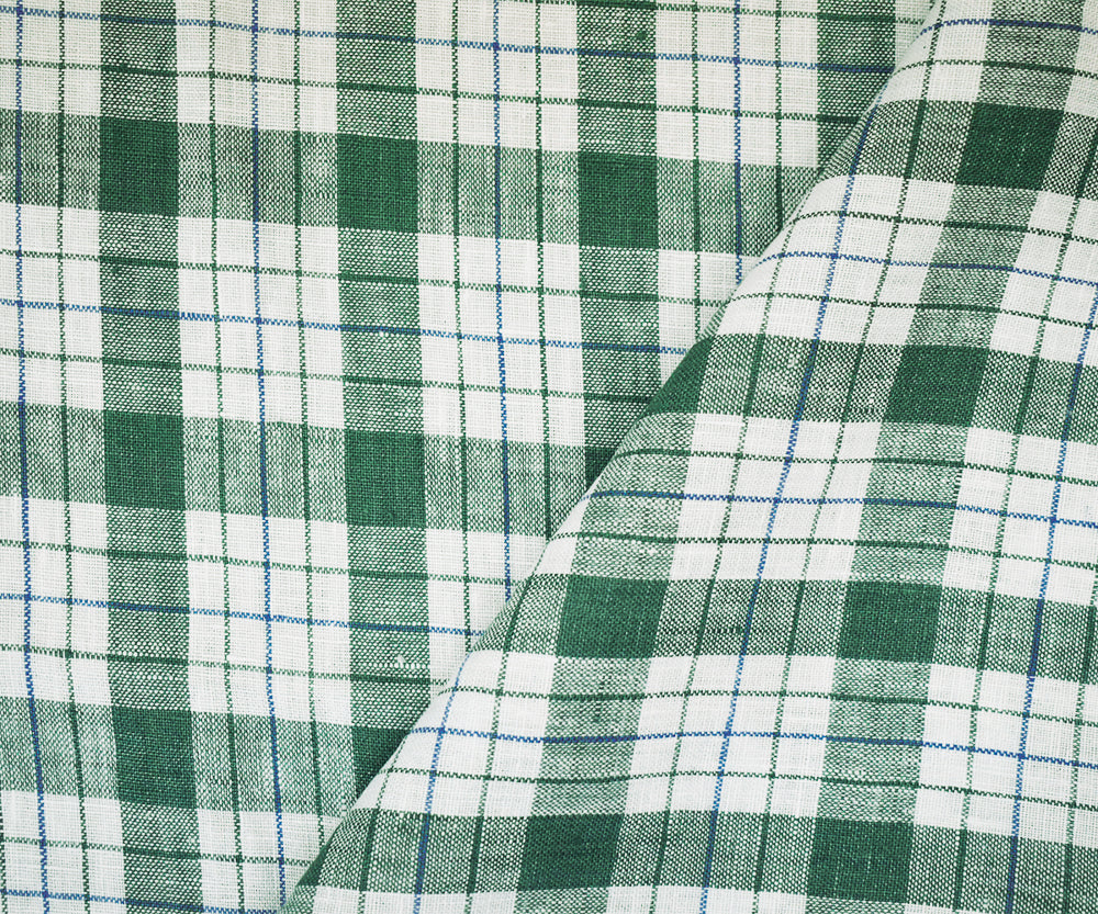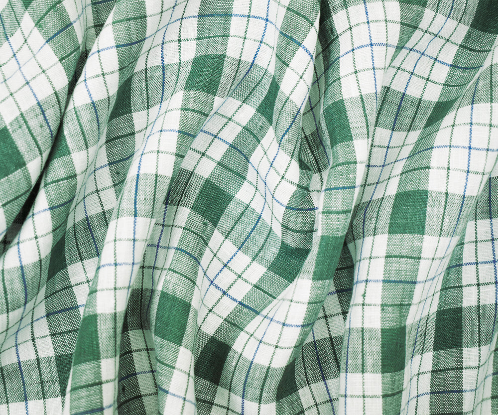 Green-Blue-Moygashel Bryson Washed Plaid Irish Linen Woven Fabric