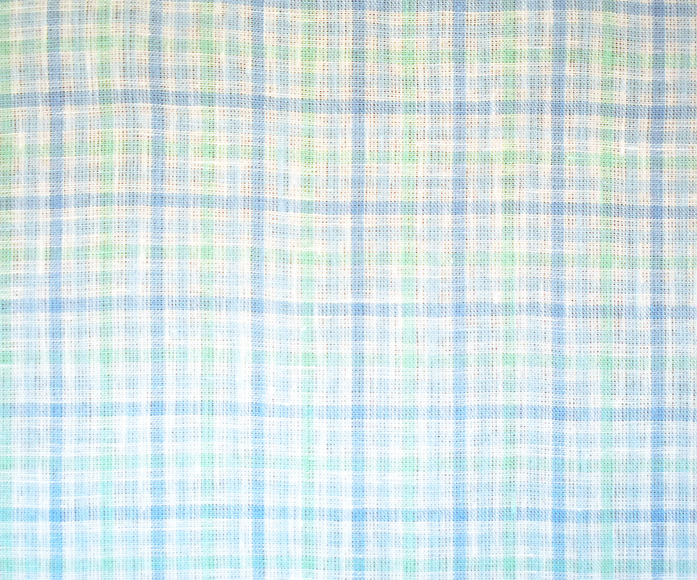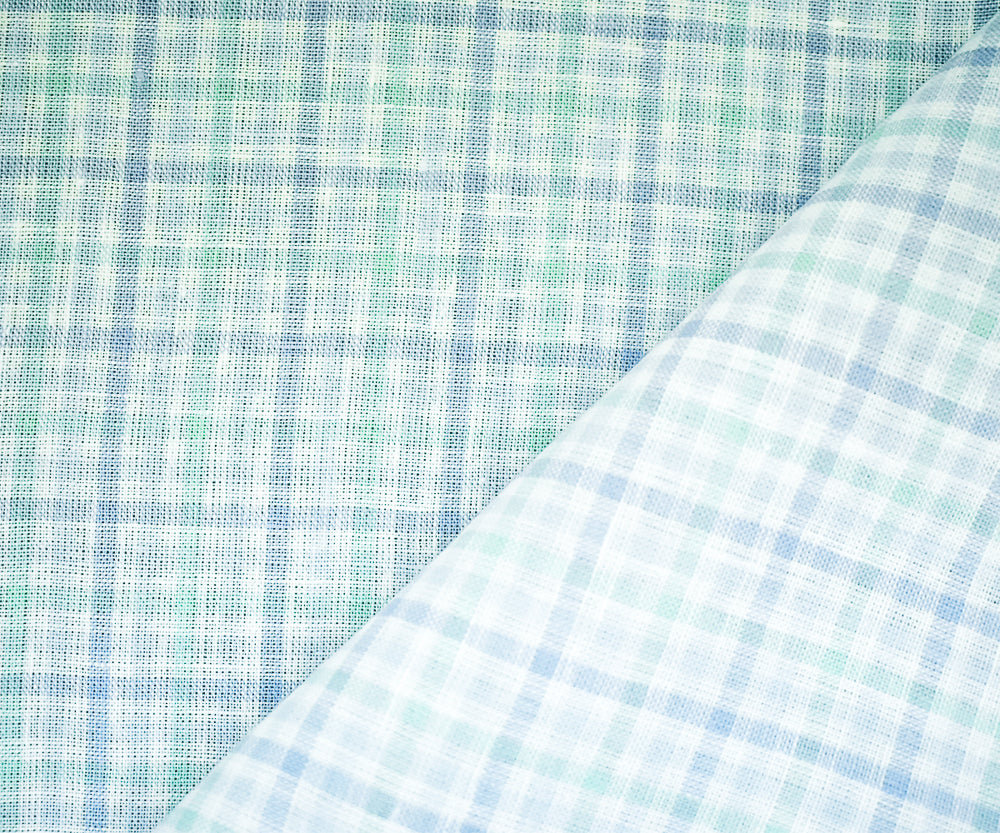 Green-Blue-White Spence Bryson Gingham Check Linen Woven Fabric