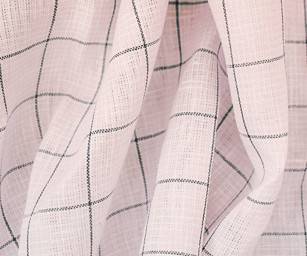Pink-Deep Gray-White Spence Bryson Check Grid Irish Linen Woven Fabric