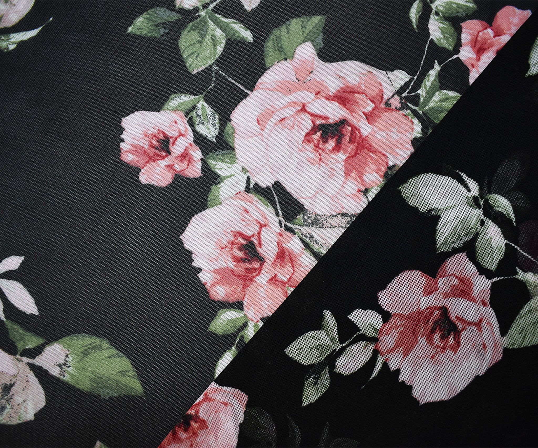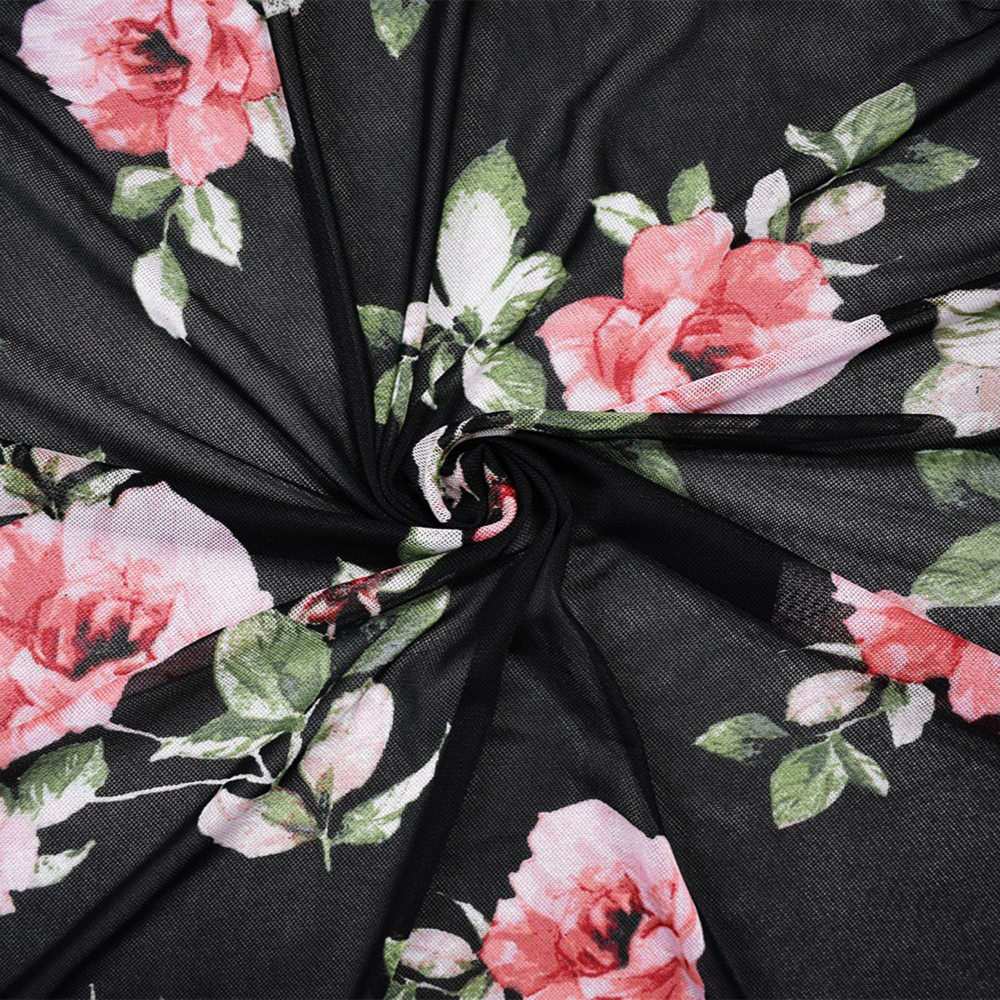 Black-Multi Poly Stretch Spandex Floral Printed Mesh Knit Fabric