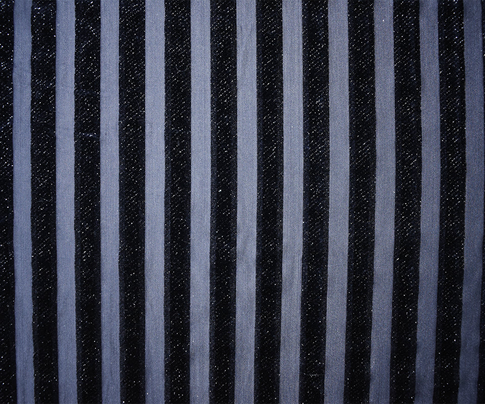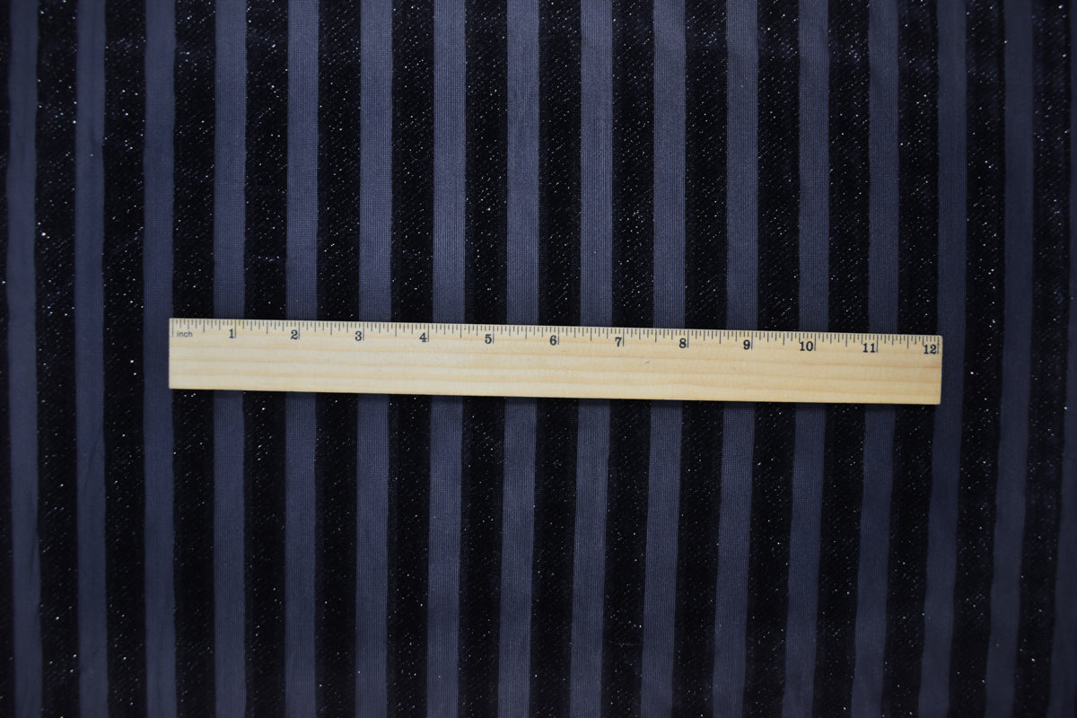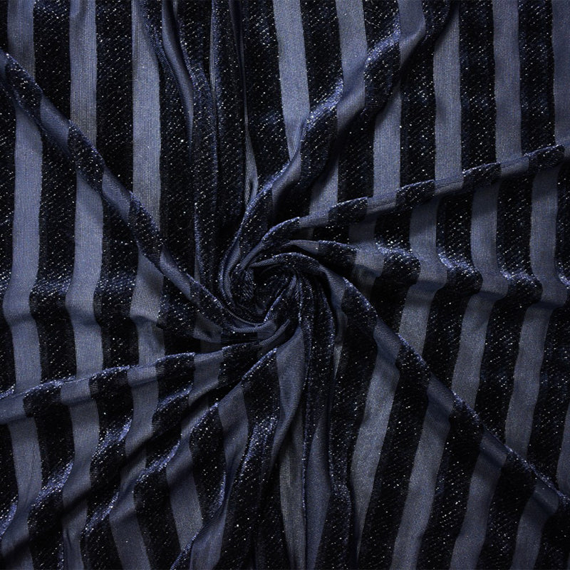 Blue-Sliver Poly Burnout Stripe Stretch Velvet Mesh Knit Fabric