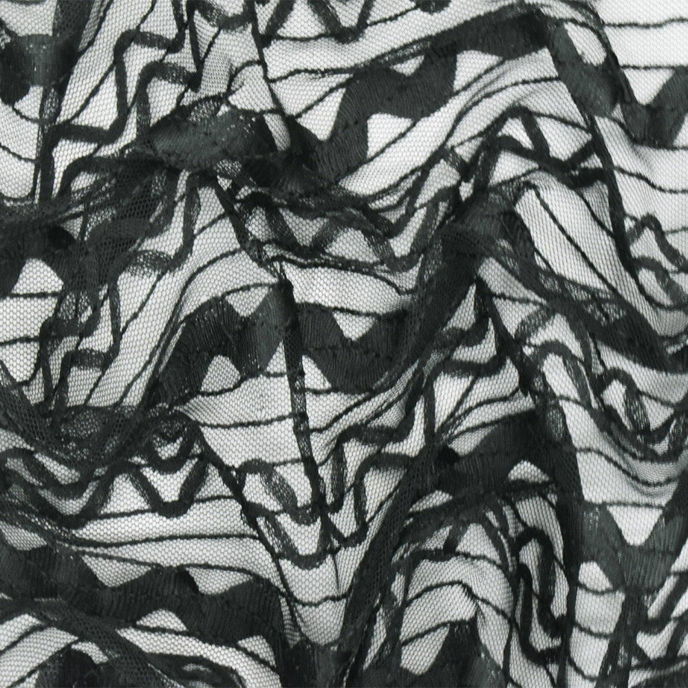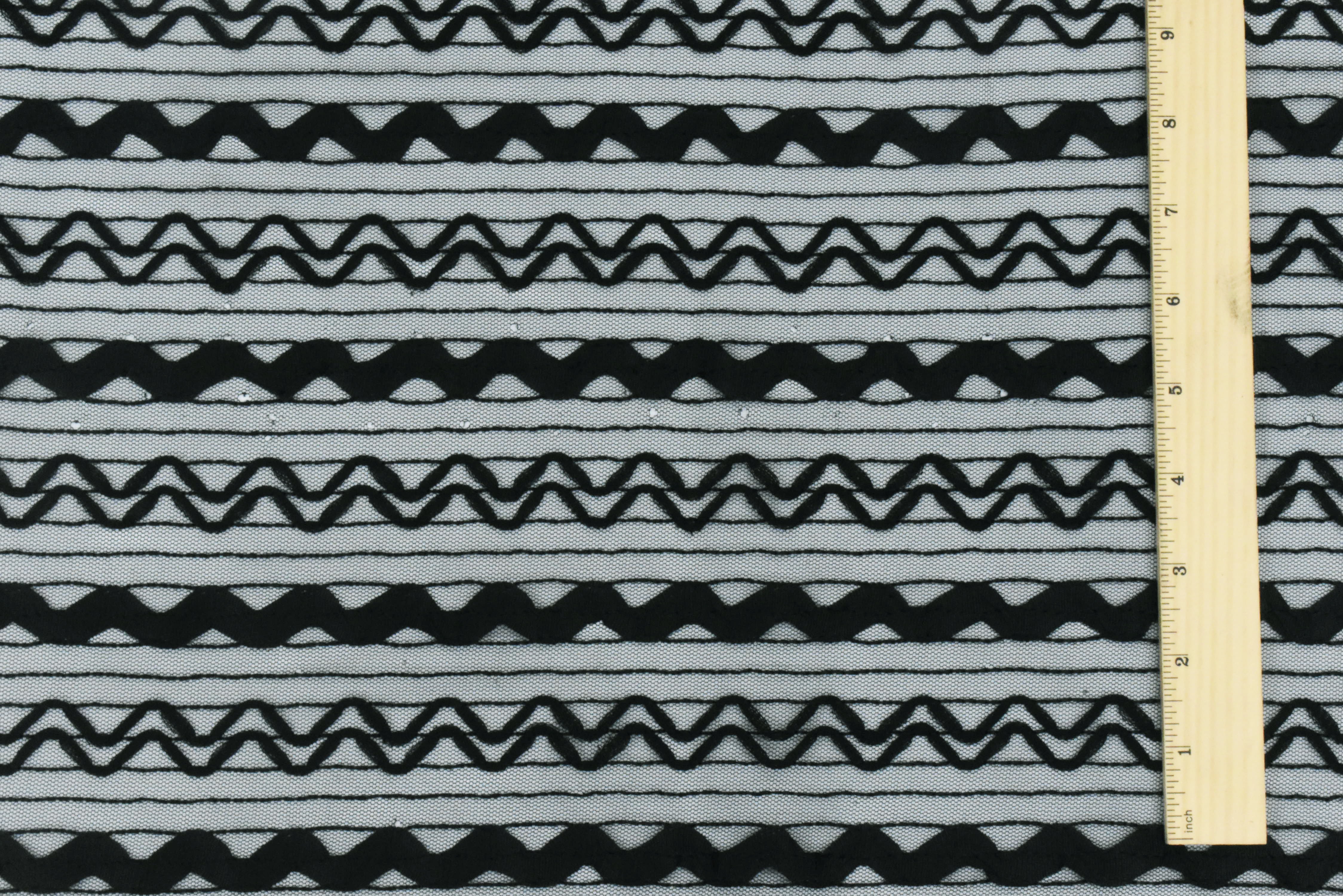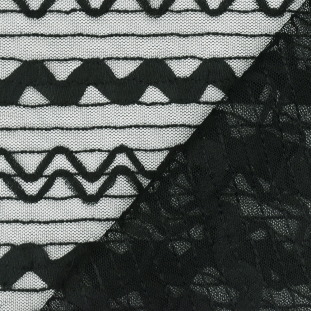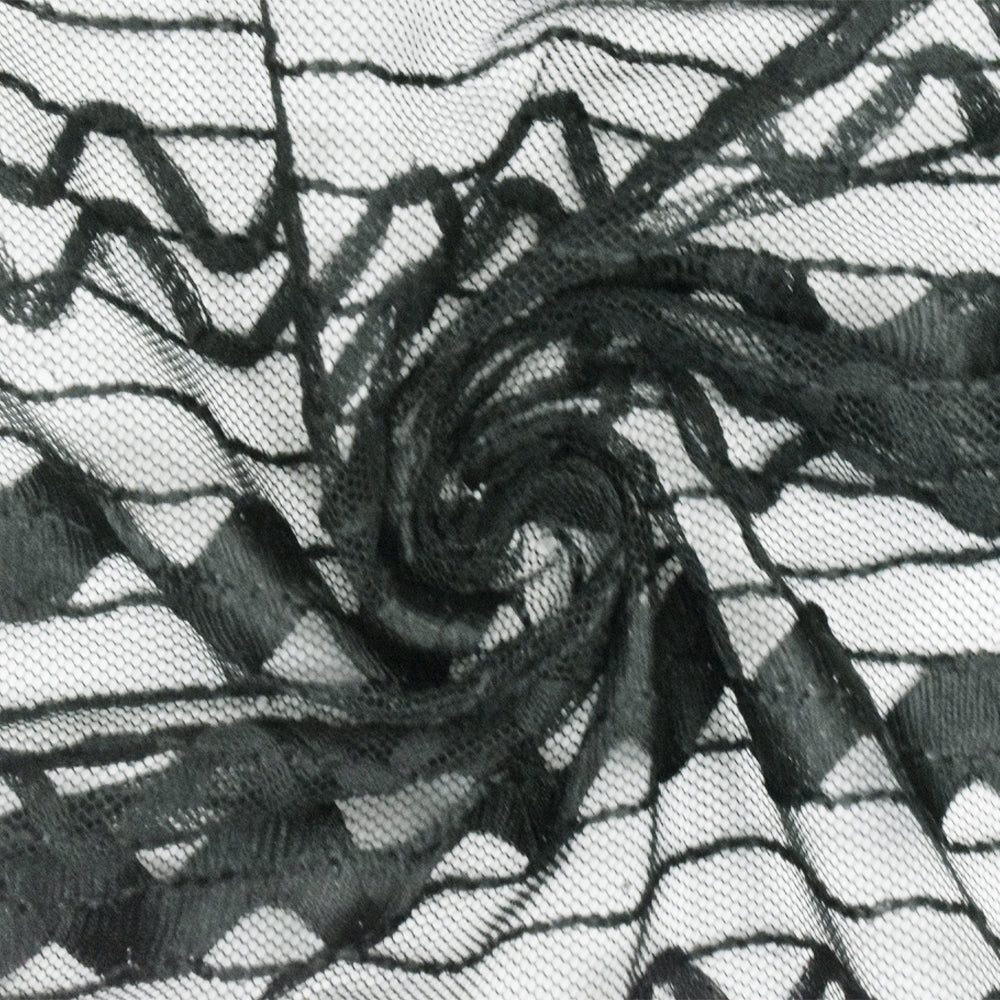Night Black Chevron Stripe Lace Mesh Knit Fabric