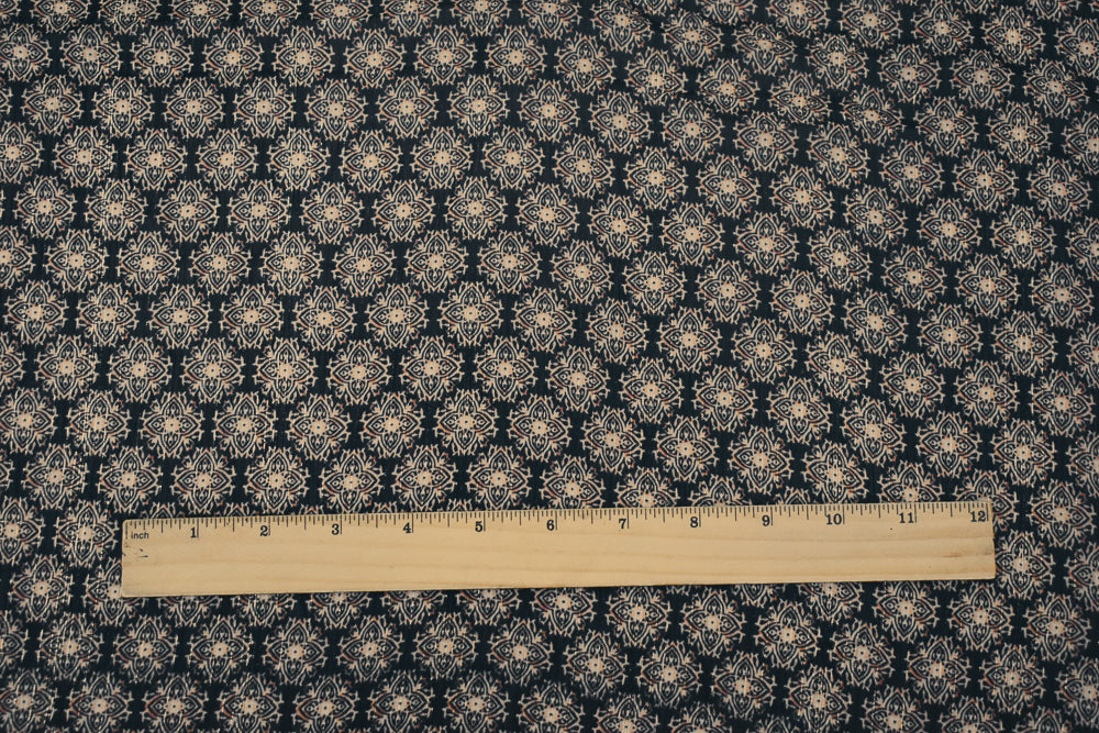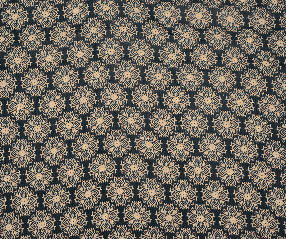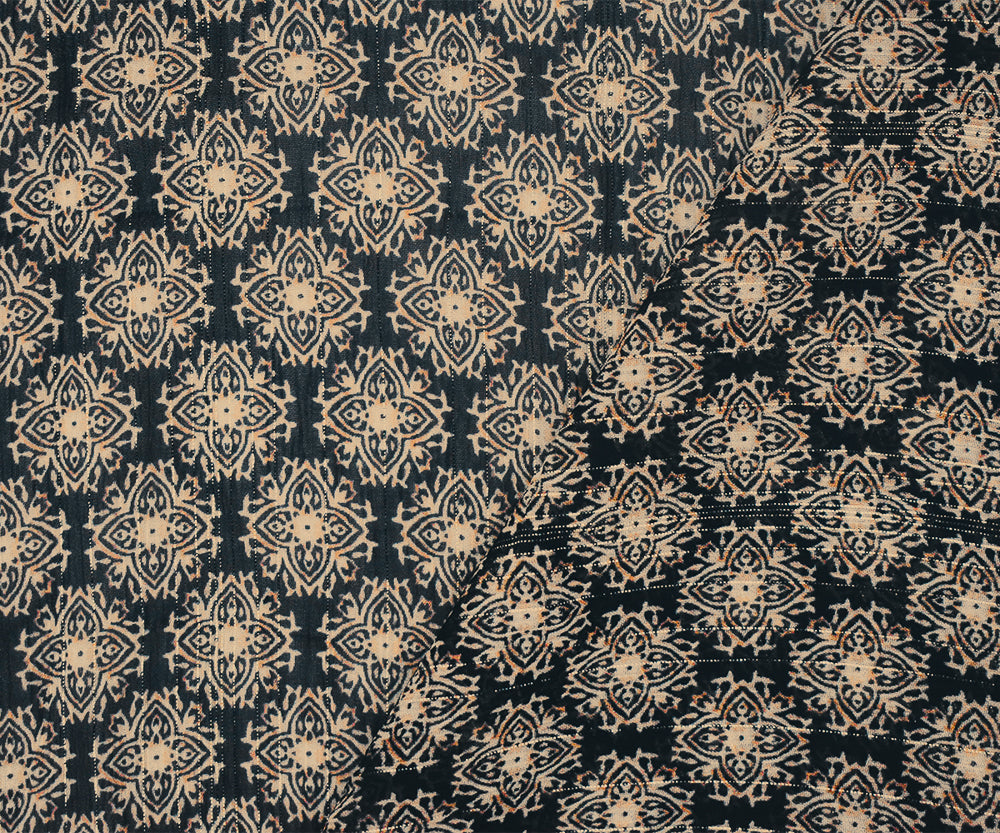 Black-Gold-Multi Medallion Print Poly Metallic Stripe Yoryu Chiffon Fabric