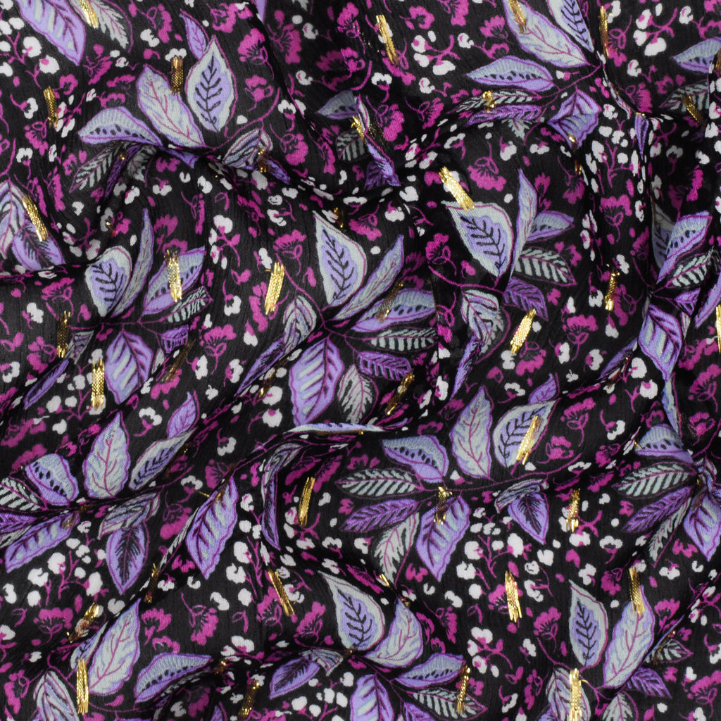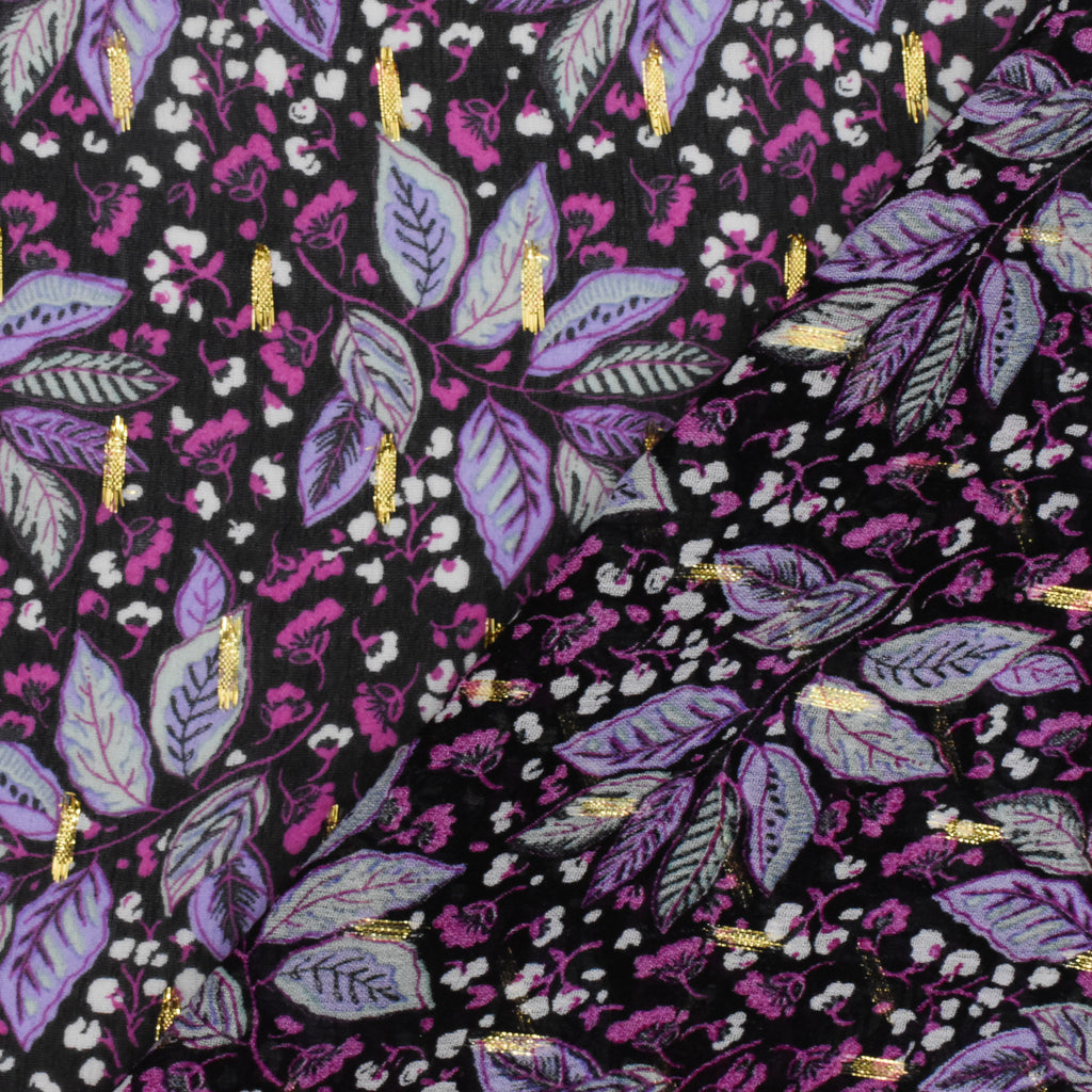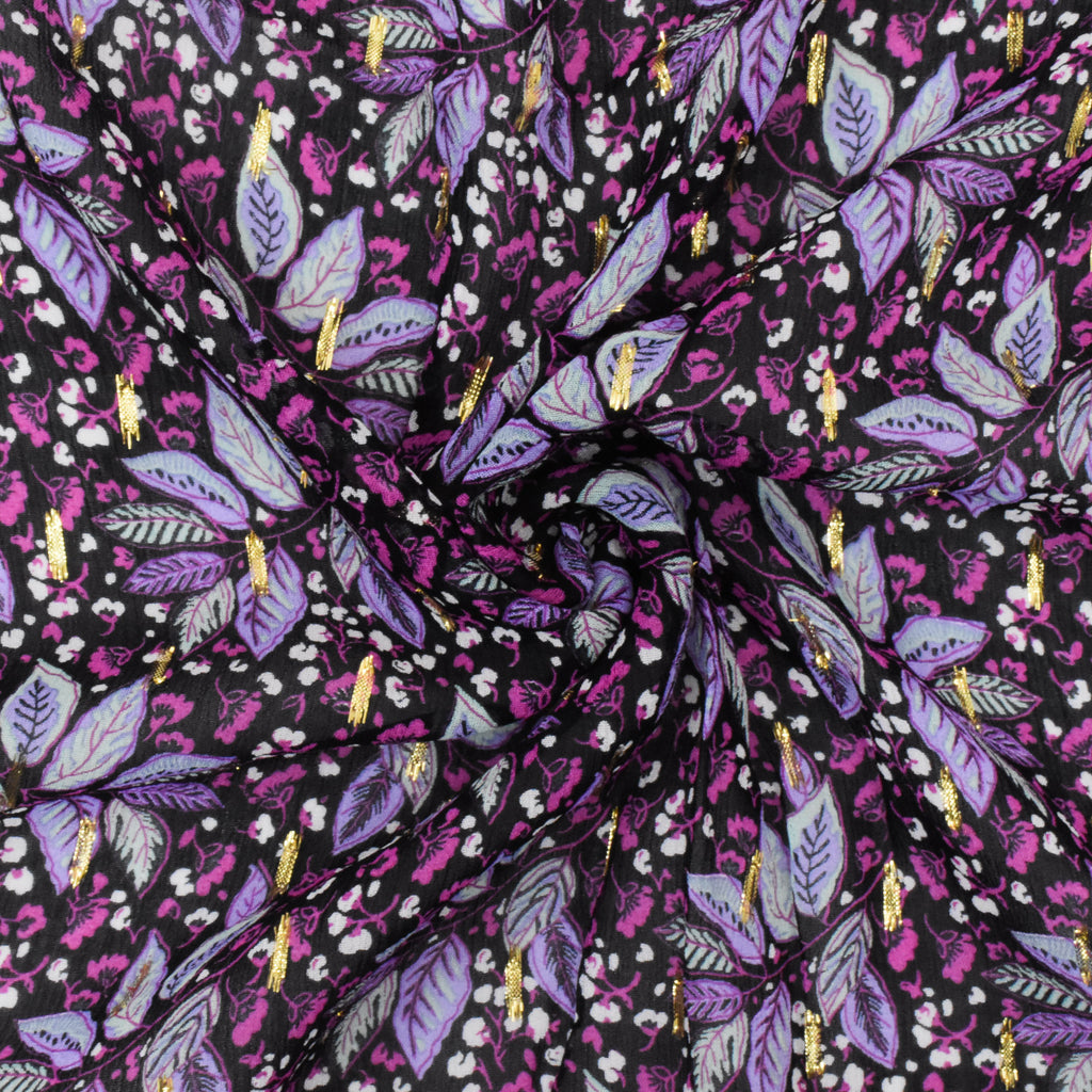Purple-Gold-Multi Famous Designer Leaves Print Viscose chiffon fabric