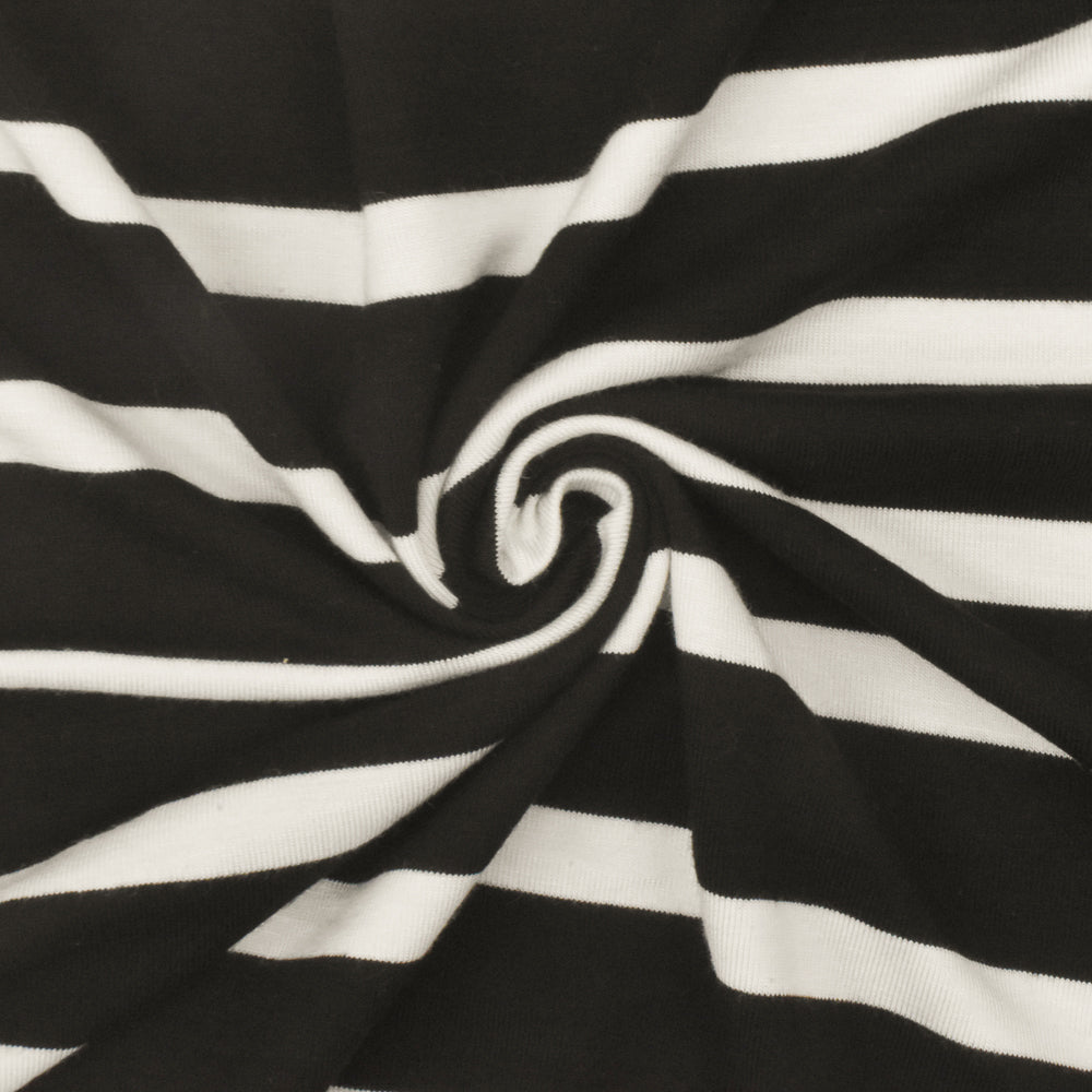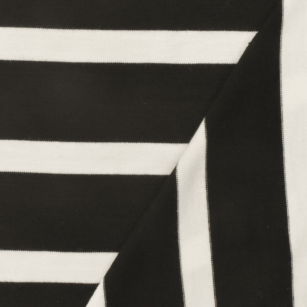Black-Ivory Stripe Stretch Spandex Rayon Modal Jersey Knit Fabric