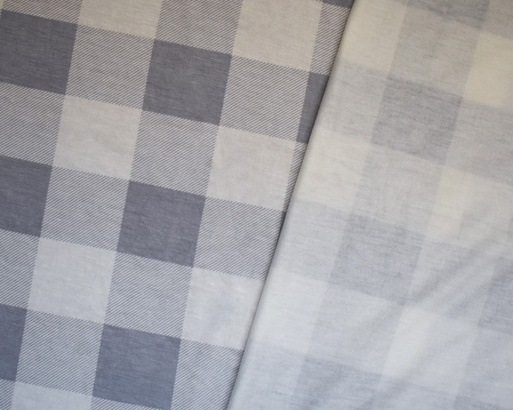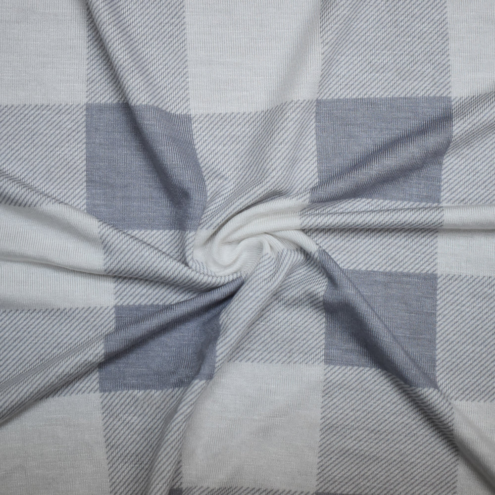 Gray-White Rayon Modal Gingham Printed Stretch Spandex Jersey Knit Fabric