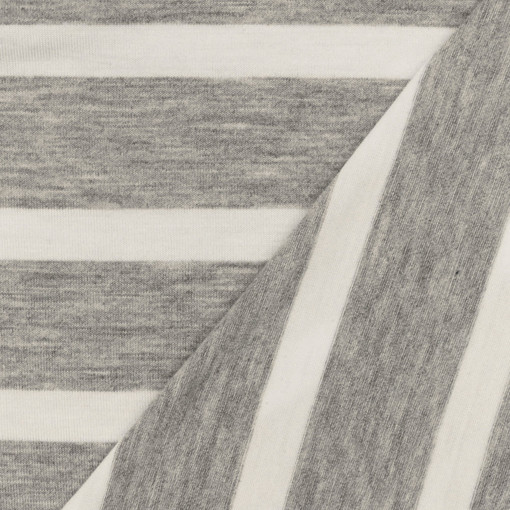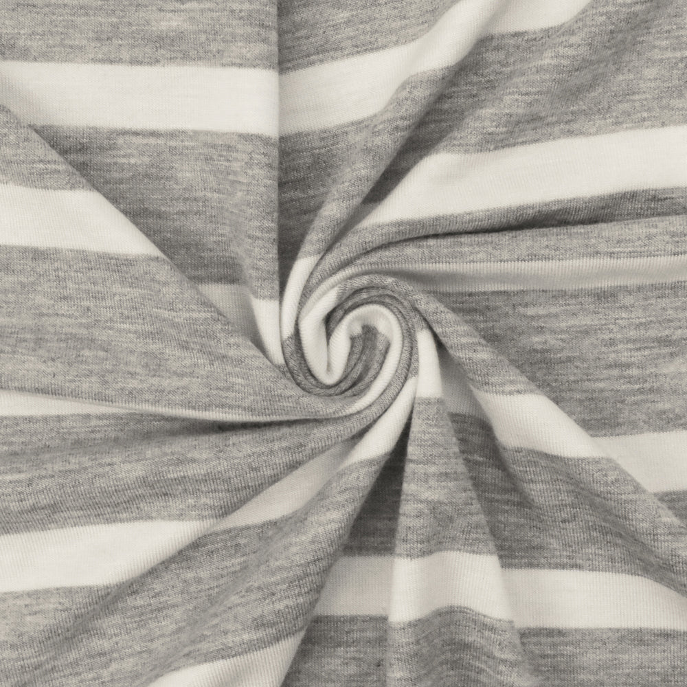 Heather Gray-Ivory Stripe Stretch Spandex Rayon Modal Jersey Knit Fabric
