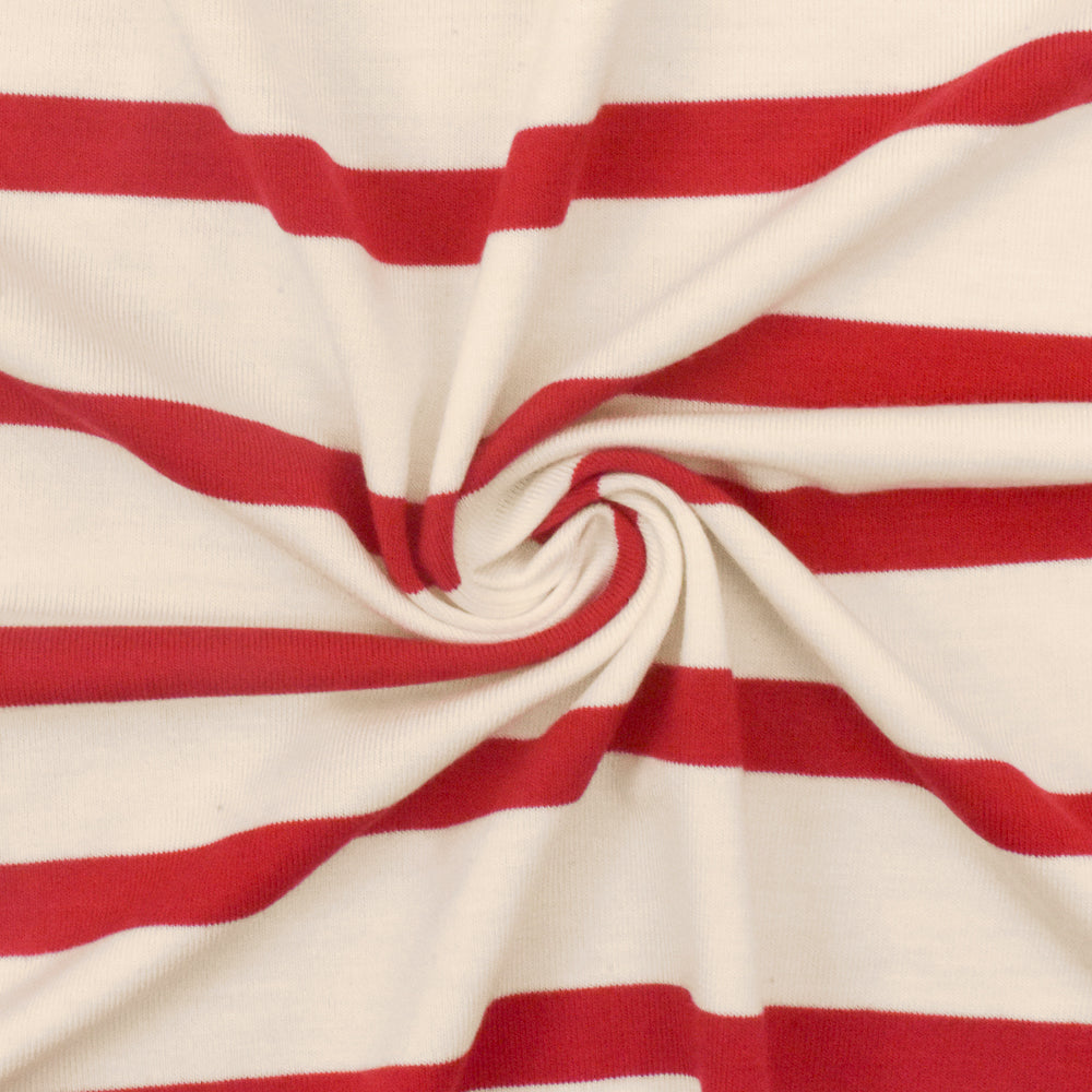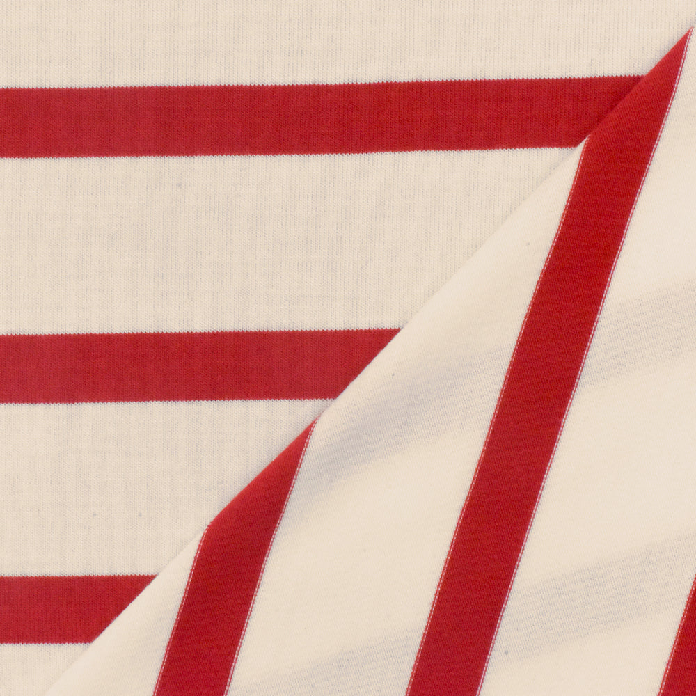 Red-Ivory Stripe Stretch Spandex Rayon Modal Jersey Knit Fabric