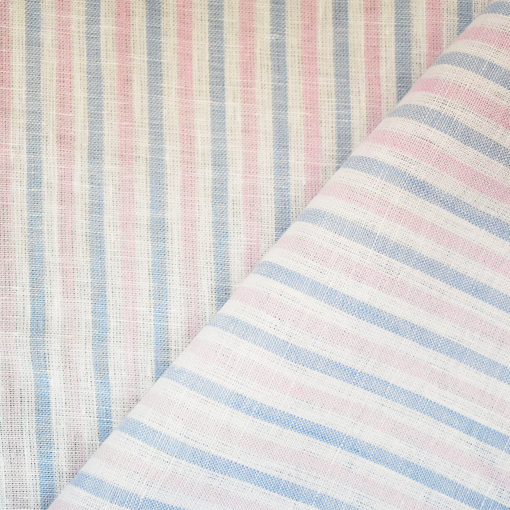 Blue-Pink-White Spence Bryson Stripe Irish Linen Slub Woven Fabric