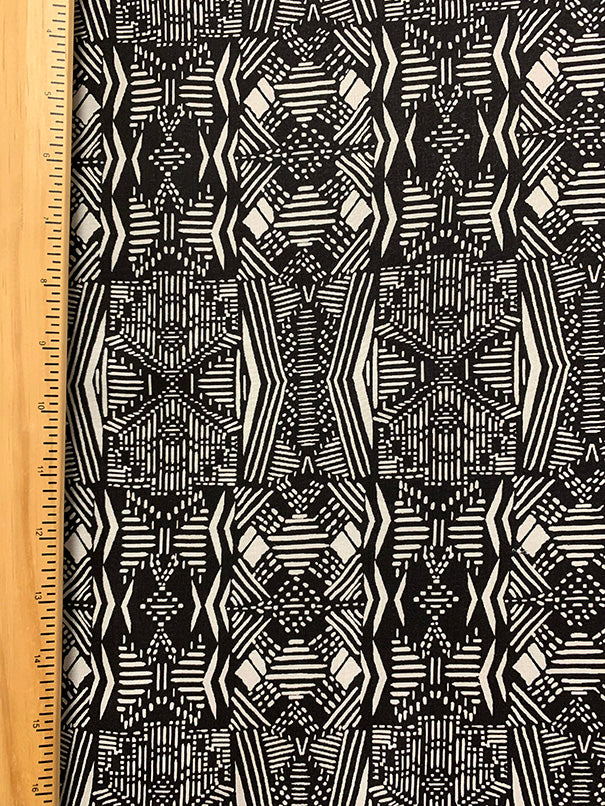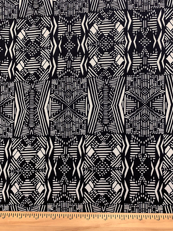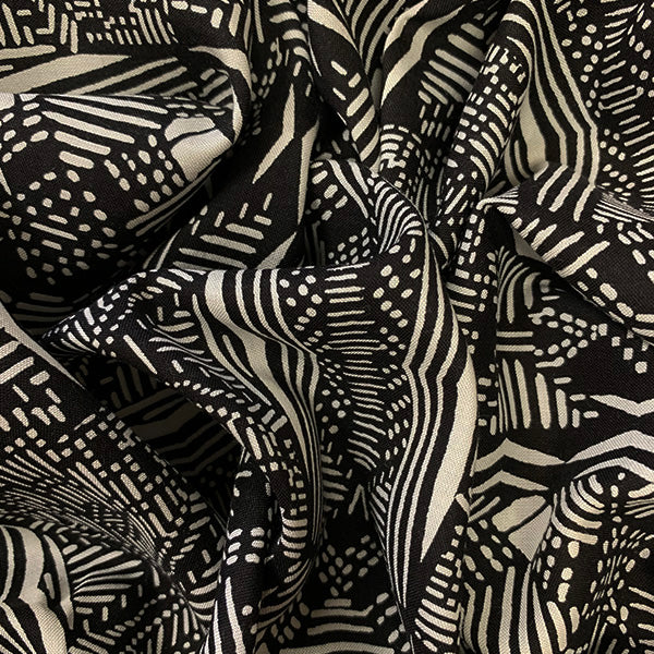 Black and White Novelty Print Stripe Rayon Challis Fabric
