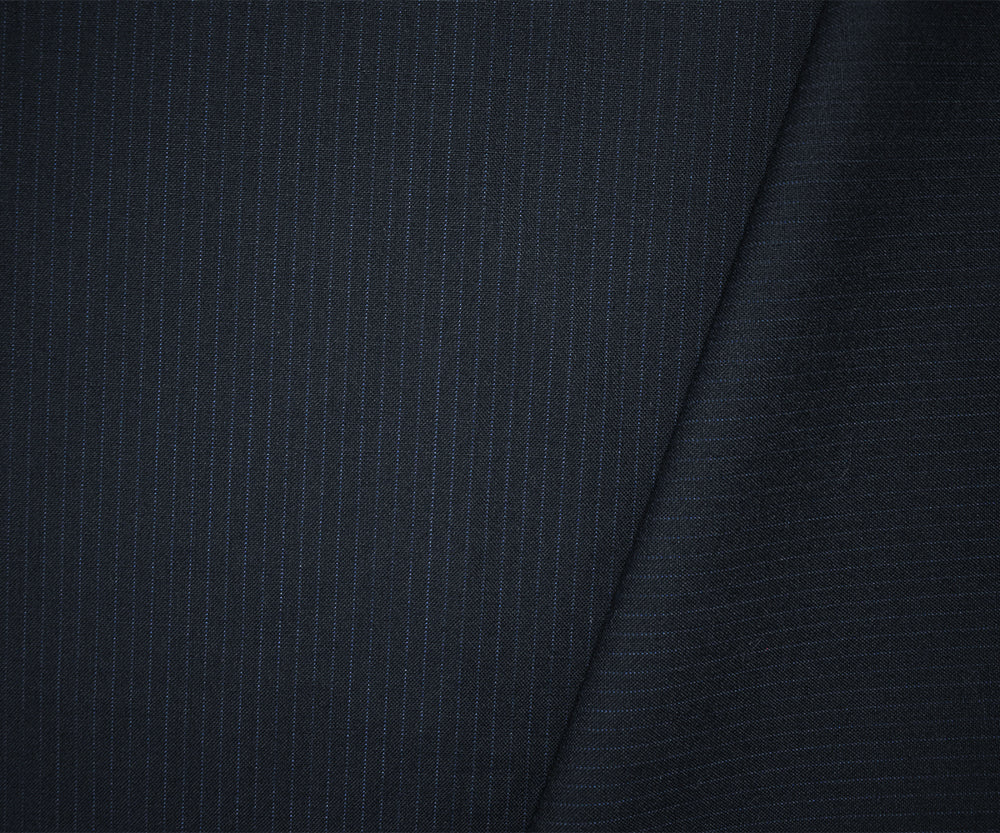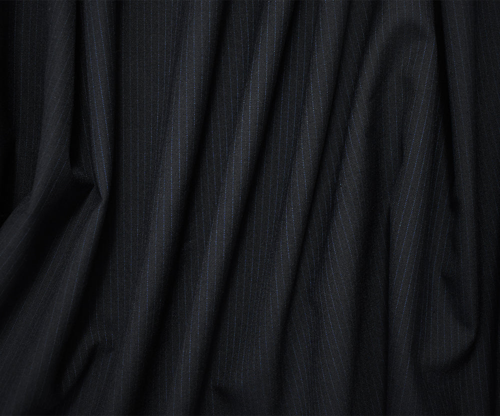 Black-Blue Wool-Polyester Japanese Vertical Stripe Shirting Woven Fabric