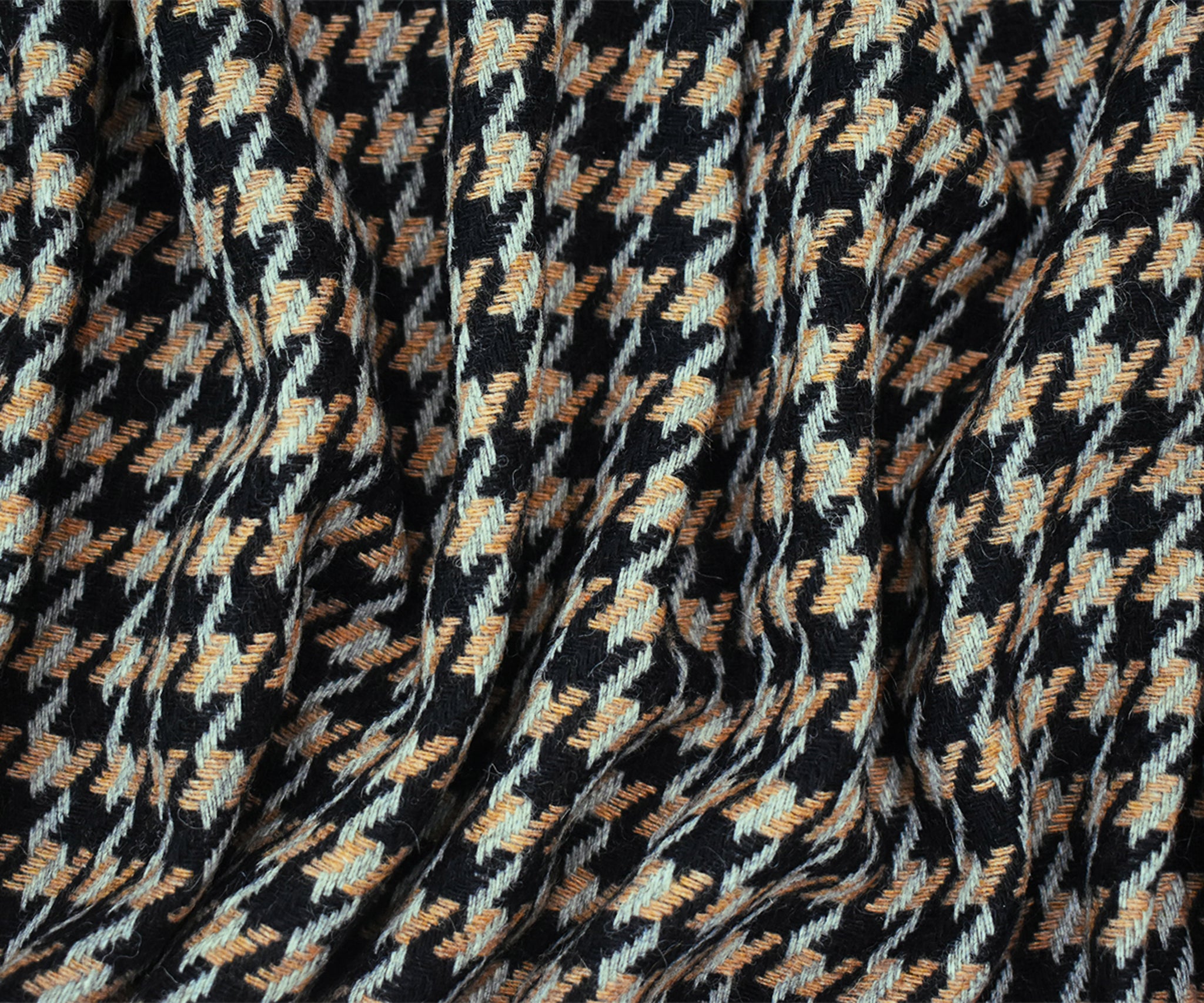 Black-Brown-Gray Wool-Poly Houndstooth Woven Jacketing Fabric